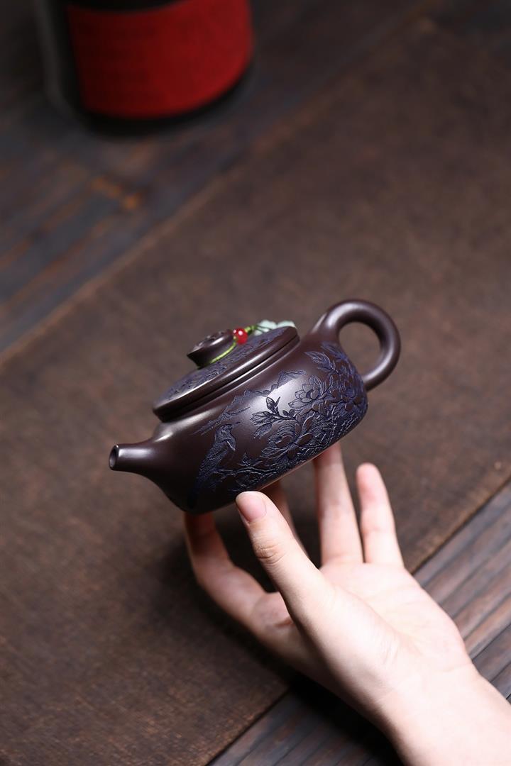 【作品介紹】此款壺形線條流暢,壺把,壺嘴,壺身壹氣呵成栩栩如生,是收藏把玩的好壺,泥料色澤古樸典雅,日久使用,漸露鋒芒,養成變化快,溫潤莊重,用其泡茶,使用的年代久,壺身就溫潤,泡出來的茶湯也就醇郁芳馨。