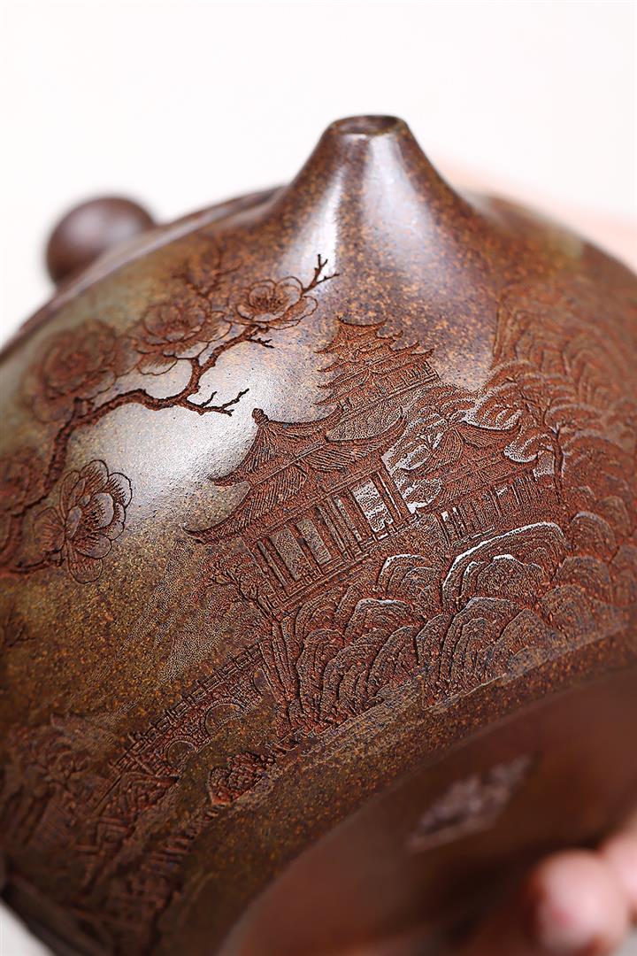 原礦小煤窯朱泥刻繪小蘋果茶壺POT7776