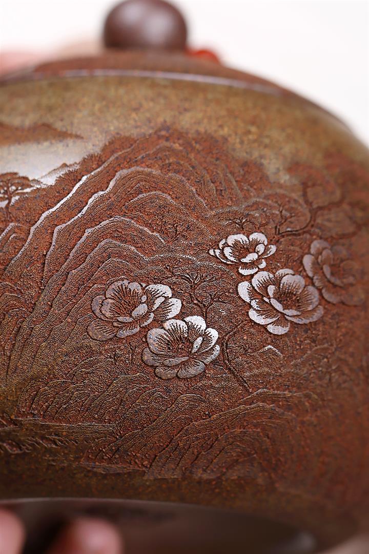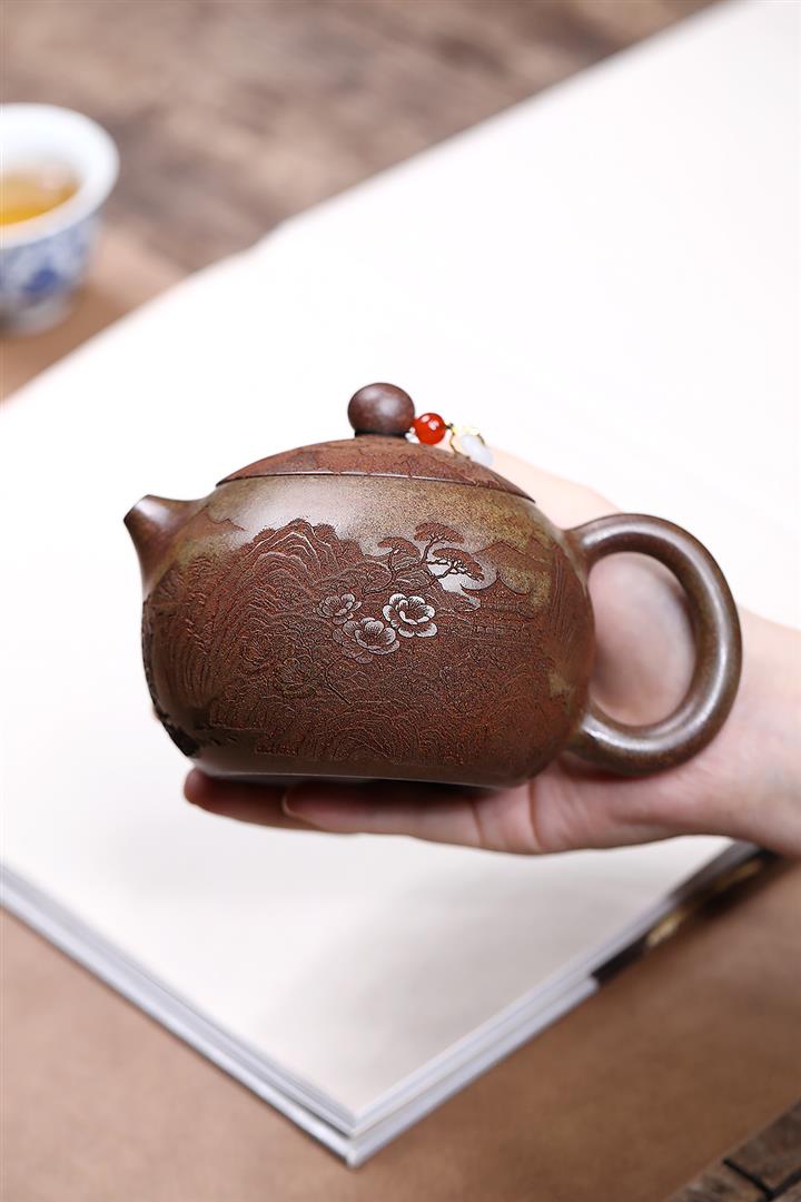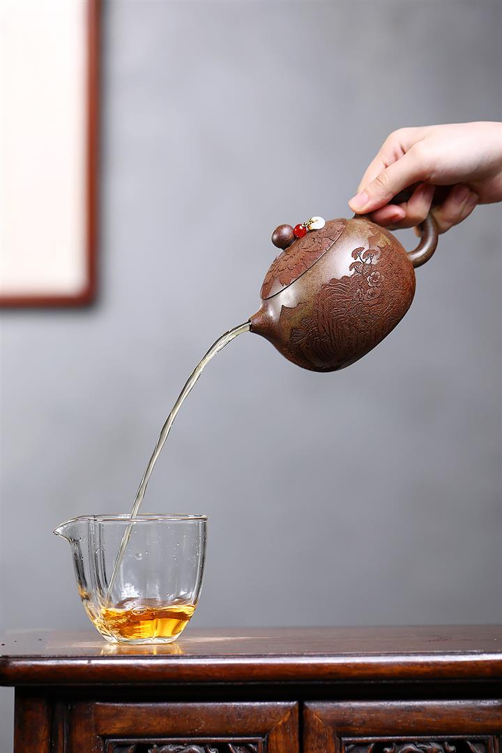 【泥料特點】砂土氣重,似淳實農民,日久使用,漸露鋒芒,養成變化,溫潤莊重。紫砂是壹種雙重氣孔結構的多孔性材質,氣孔微細,密度高。用紫砂壺沏茶,不失原味,且香不渙散,得茶之真香真味。紫砂使用越久,壺身色澤越發光亮照人,氣韻溫雅。紫砂壺長久使用器身會因撫摸擦拭,變得越發溫潤光澤。