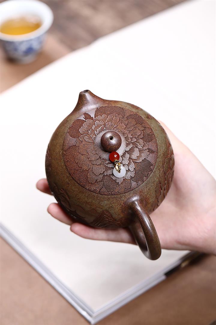 原礦朱泥焐灰圓珠名家手制茶壺POT7775