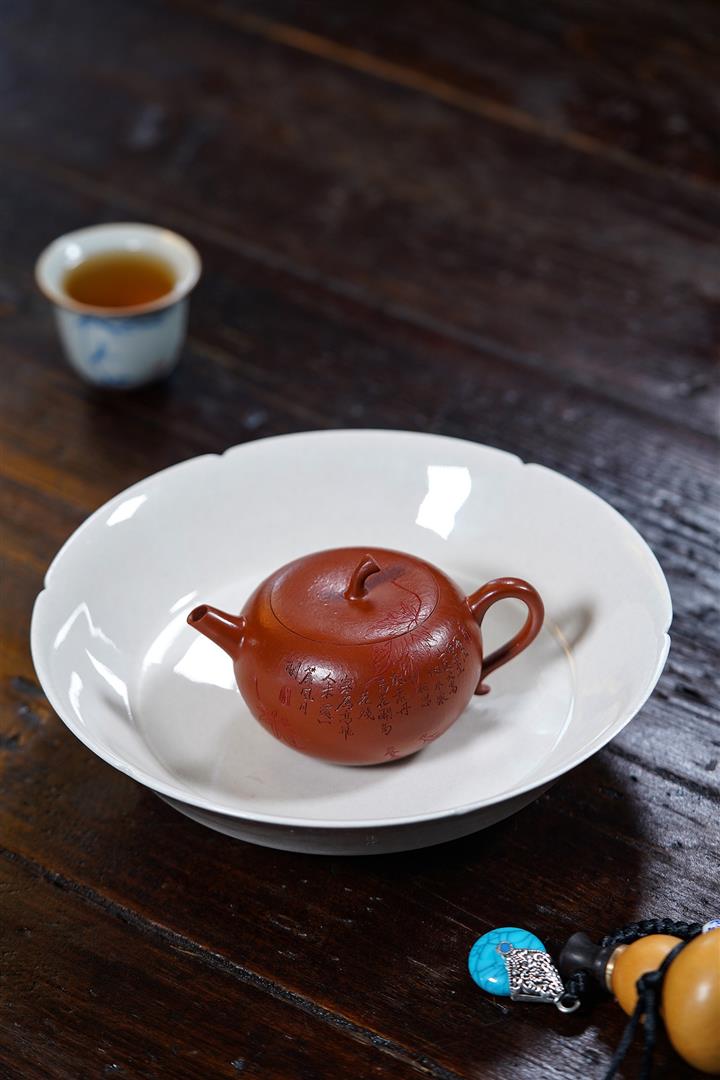 原礦小煤窯朱泥刻繪小蘋果茶壺POT7776