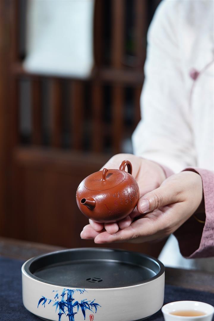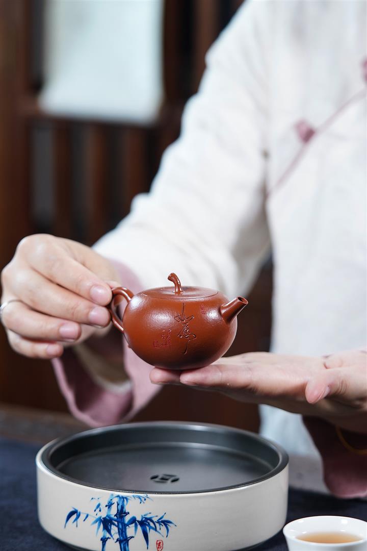 【泥料特點】砂土氣重,似淳實農民,日久使用,漸露鋒芒,養成變化,溫潤莊重。紫砂是壹種雙重氣孔結構的多孔性材質,氣孔微細,密度高。用紫砂壺沏茶,不失原味,且香不渙散,得茶之真香真味。紫砂使用越久,壺身色澤越發光亮照人,氣韻溫雅。紫砂壺長久使用器身會因撫摸擦拭,變得越發溫潤光澤。
