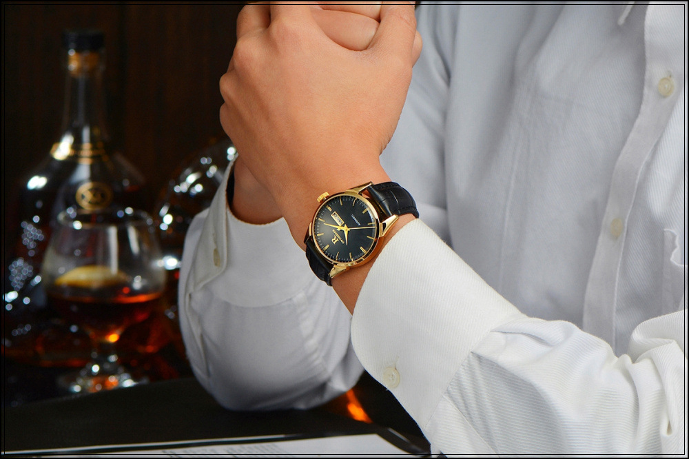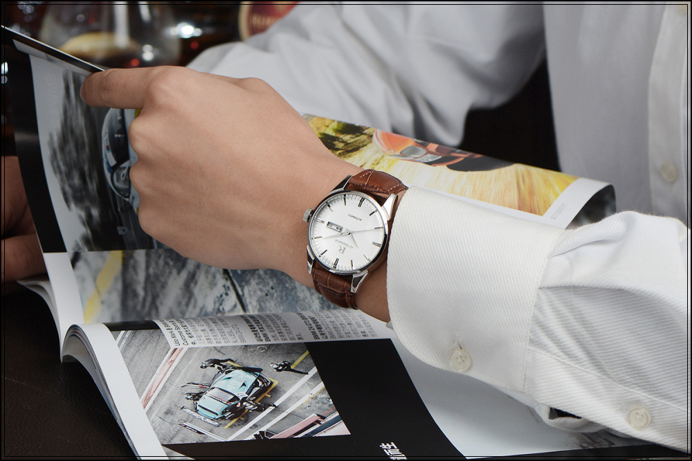 石英日曆腕表真皮男士六針運動防水錶Wat29