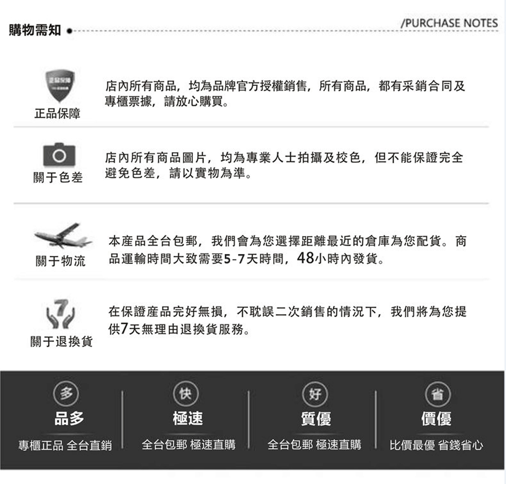 下單成功之後,我們會按照下單先後順序進行配貨,配貨週期為3個工作日左右,一般到達時間為7個工作日左右。