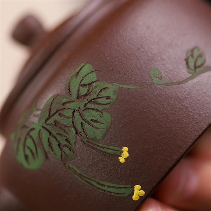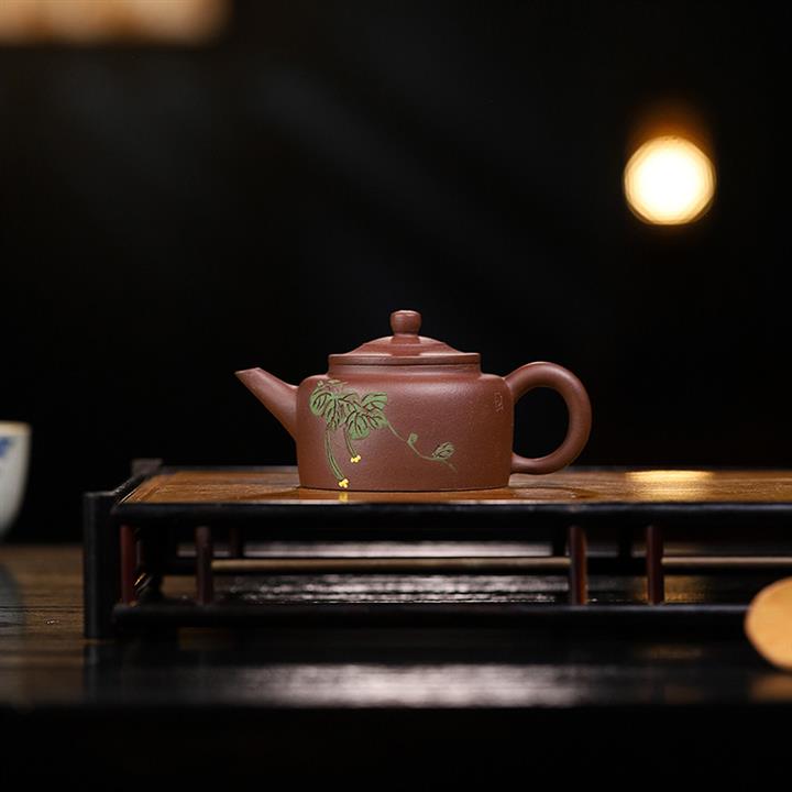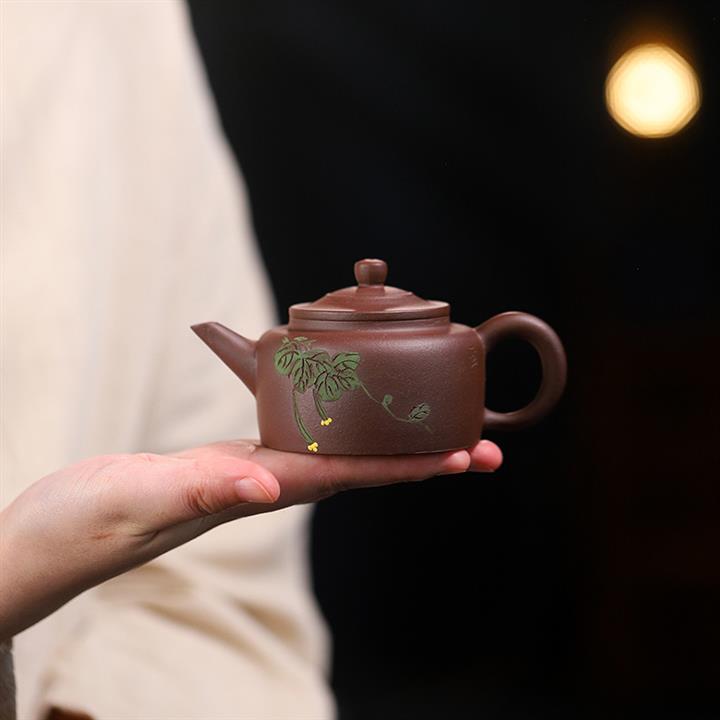 【作品介紹】此款壺形線條流暢,壺把,壺嘴,壺身壹氣呵成栩栩如生,是收藏把玩的好壺,泥料色澤古樸典雅,日久使用,漸露鋒芒,養成變化快,溫潤莊重,用其泡茶,使用的年代久,壺身就溫潤,泡出來的茶湯也就醇郁芳馨。