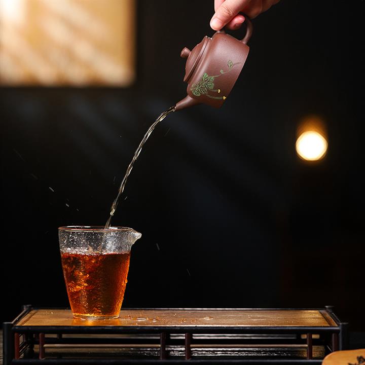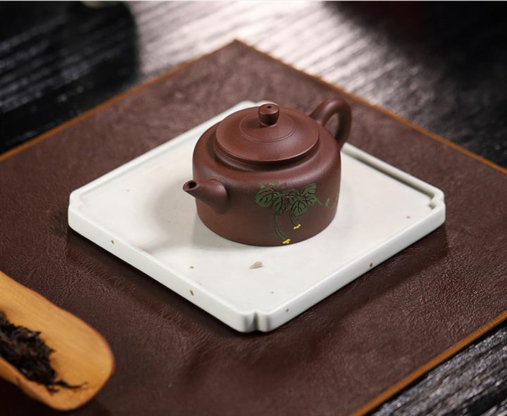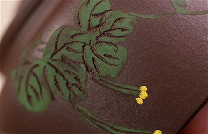 【泥料特點】砂土氣重,似淳實農民,日久使用,漸露鋒芒,養成變化,溫潤莊重。紫砂是壹種雙重氣孔結構的多孔性材質,氣孔微細,密度高。用紫砂壺沏茶,不失原味,且香不渙散,得茶之真香真味。紫砂使用越久,壺身色澤越發光亮照人,氣韻溫雅。紫砂壺長久使用器身會因撫摸擦拭,變得越發溫潤光澤。