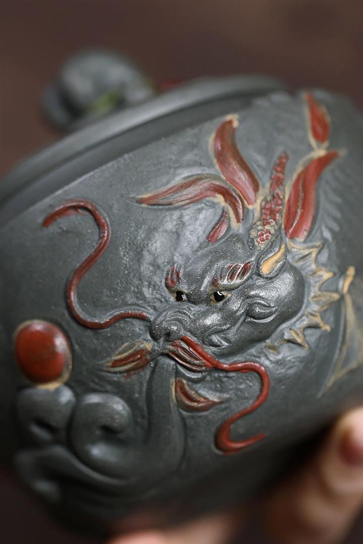 原礦老紫泥浮雕祥龍戲珠茶壺POT7734