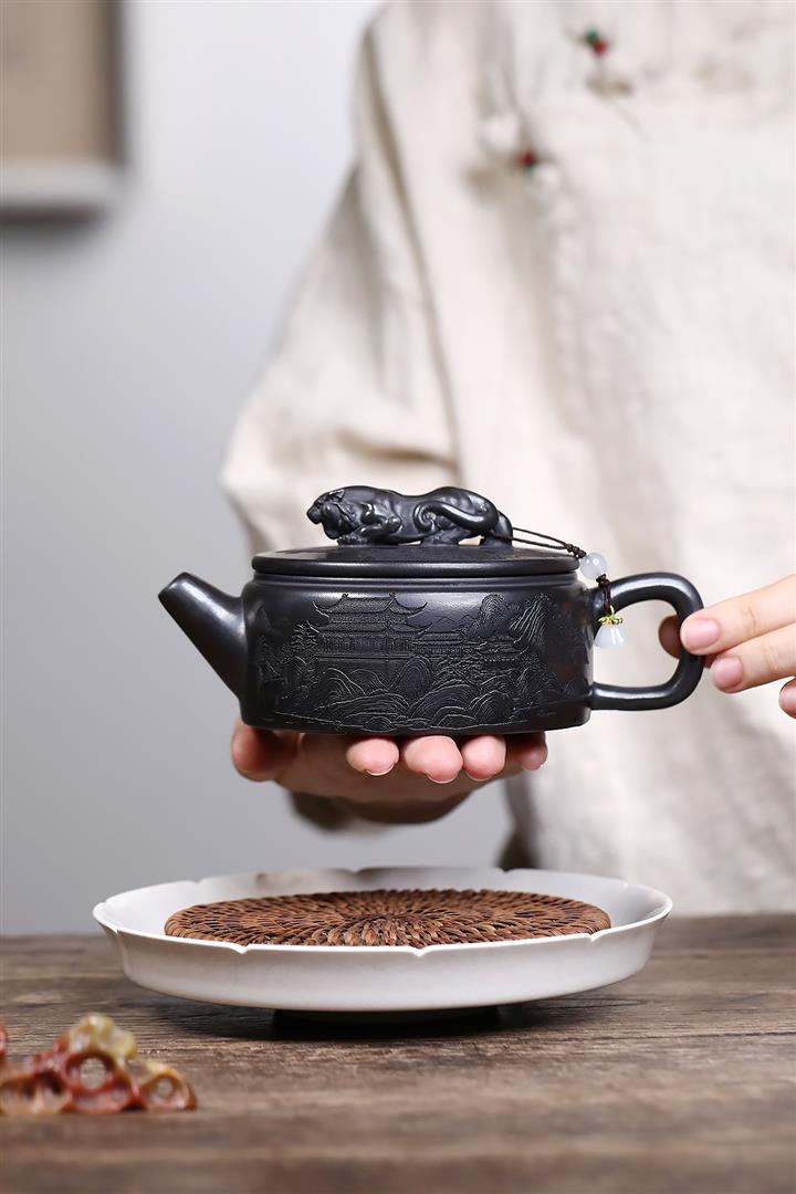 原礦玄鐵石黃伏虎漢瓦茶壺POT7728