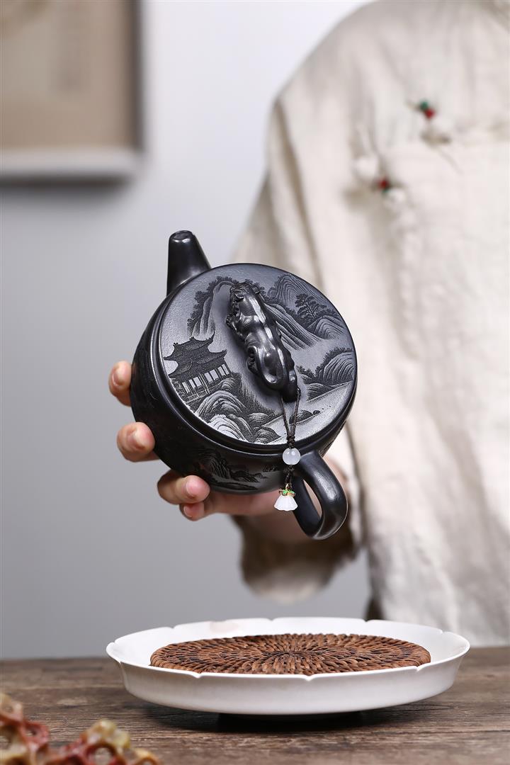 原礦古烏泥太平有象刻繪茶壺POT7790