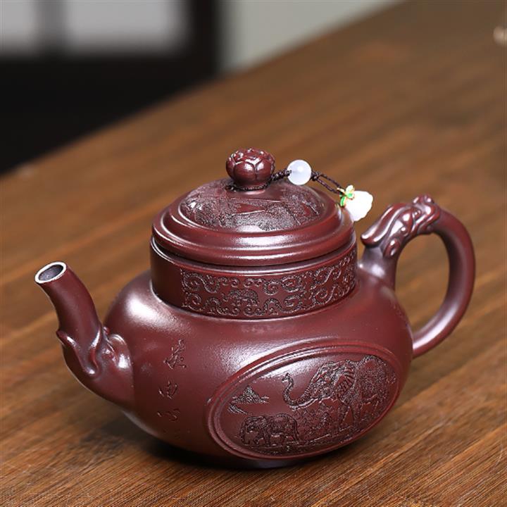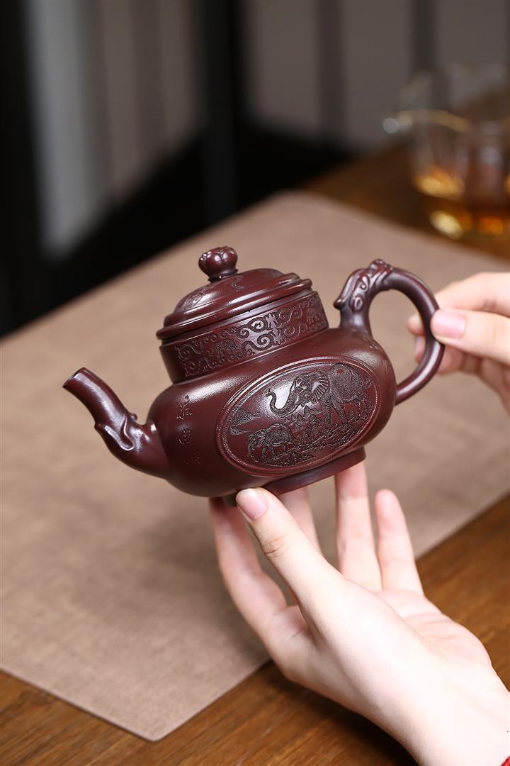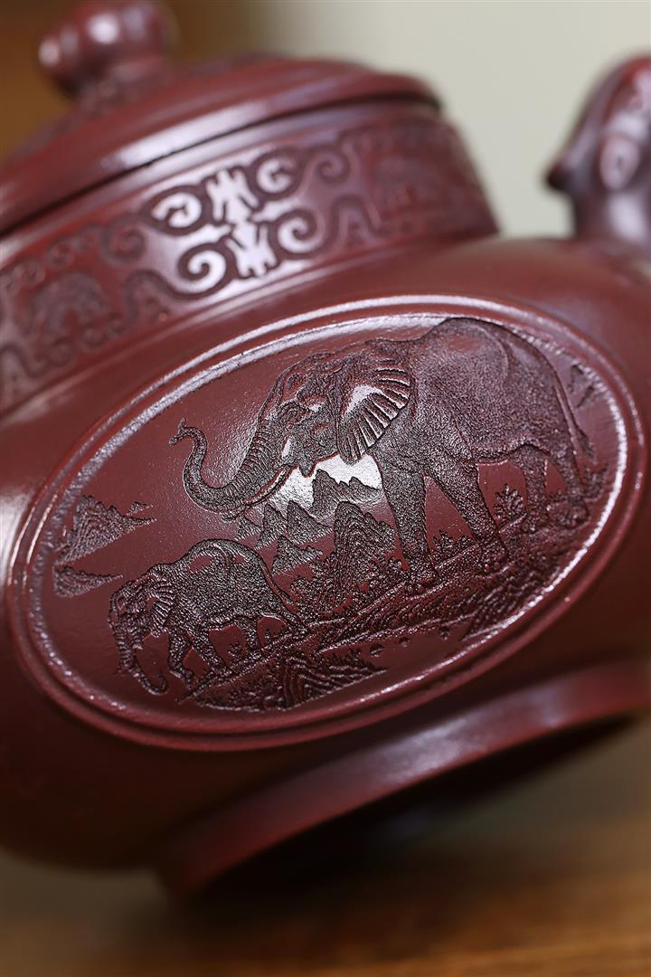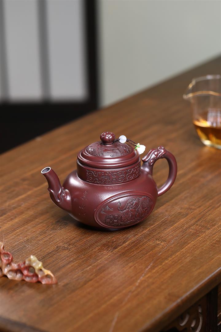 原礦古烏泥太平有象刻繪茶壺POT7790