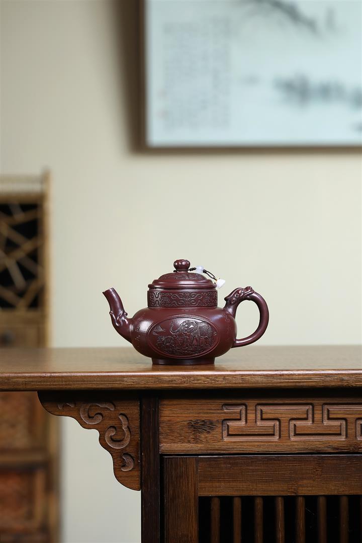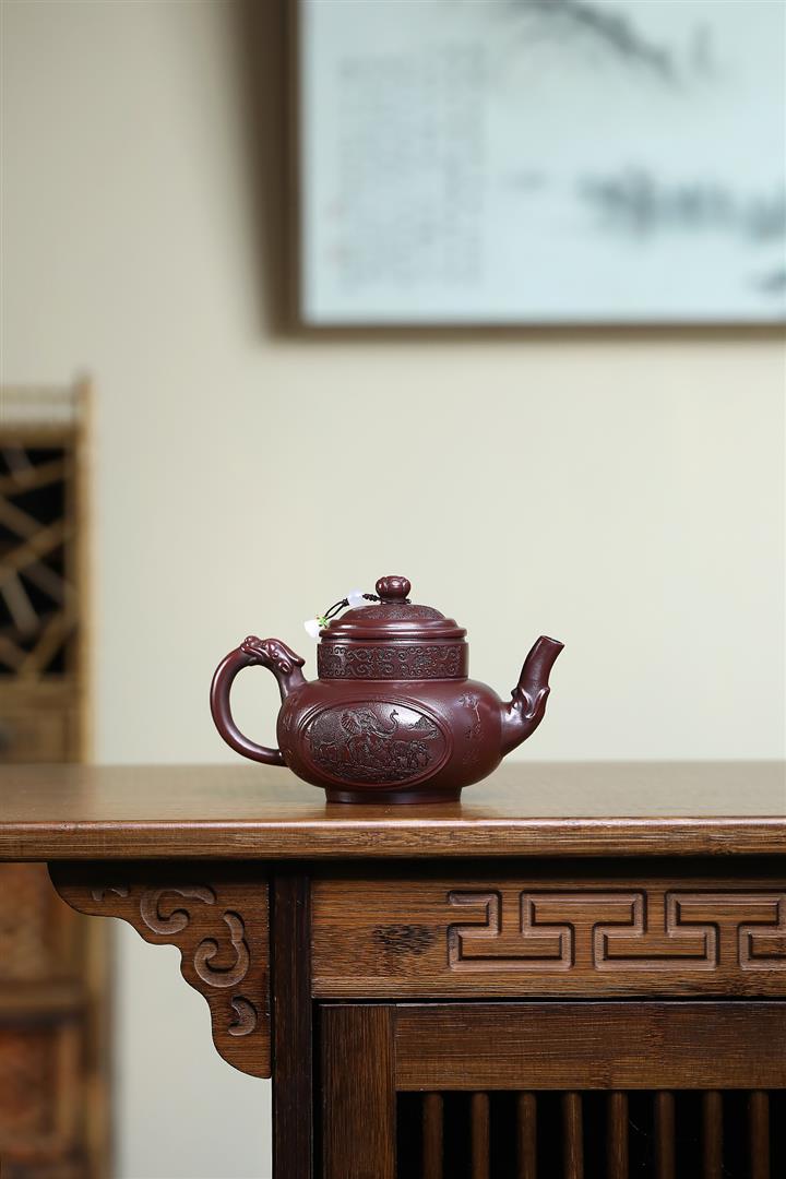 原礦紫泥刻繪山水德鐘茶壺POT7787