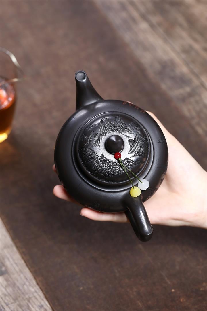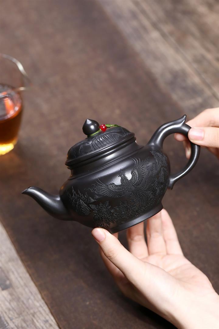 【作品介紹】此款壺形線條流暢,壺把,壺嘴,壺身壹氣呵成栩栩如生,是收藏把玩的好壺,泥料色澤古樸典雅,日久使用,漸露鋒芒,養成變化快,溫潤莊重,用其泡茶,使用的年代久,壺身就溫潤,泡出來的茶湯也就醇郁芳馨。