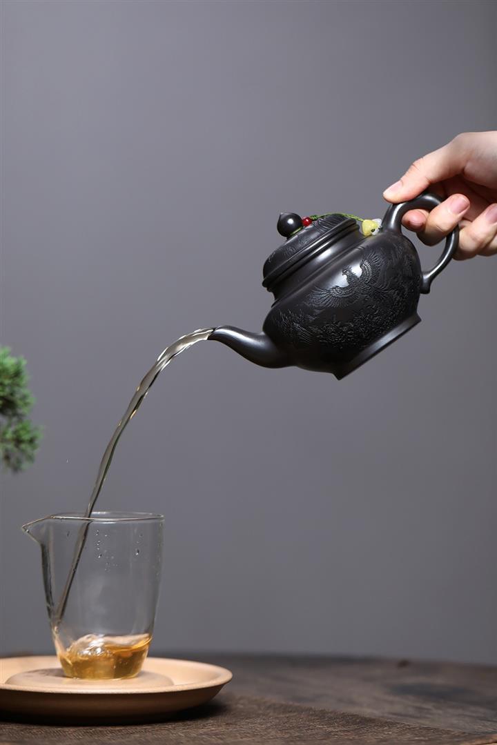 【泥料特點】砂土氣重,似淳實農民,日久使用,漸露鋒芒,養成變化,溫潤莊重。紫砂是壹種雙重氣孔結構的多孔性材質,氣孔微細,密度高。用紫砂壺沏茶,不失原味,且香不渙散,得茶之真香真味。紫砂使用越久,壺身色澤越發光亮照人,氣韻溫雅。紫砂壺長久使用器身會因撫摸擦拭,變得越發溫潤光澤。