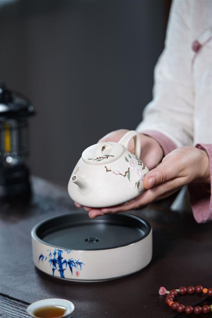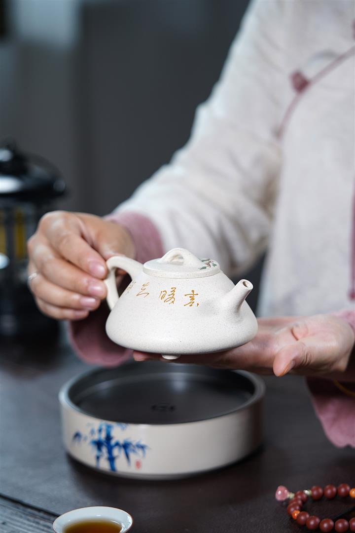 【泥料特點】砂土氣重,似淳實農民,日久使用,漸露鋒芒,養成變化,溫潤莊重。紫砂是壹種雙重氣孔結構的多孔性材質,氣孔微細,密度高。用紫砂壺沏茶,不失原味,且香不渙散,得茶之真香真味。紫砂使用越久,壺身色澤越發光亮照人,氣韻溫雅。紫砂壺長久使用器身會因撫摸擦拭,變得越發溫潤光澤。
