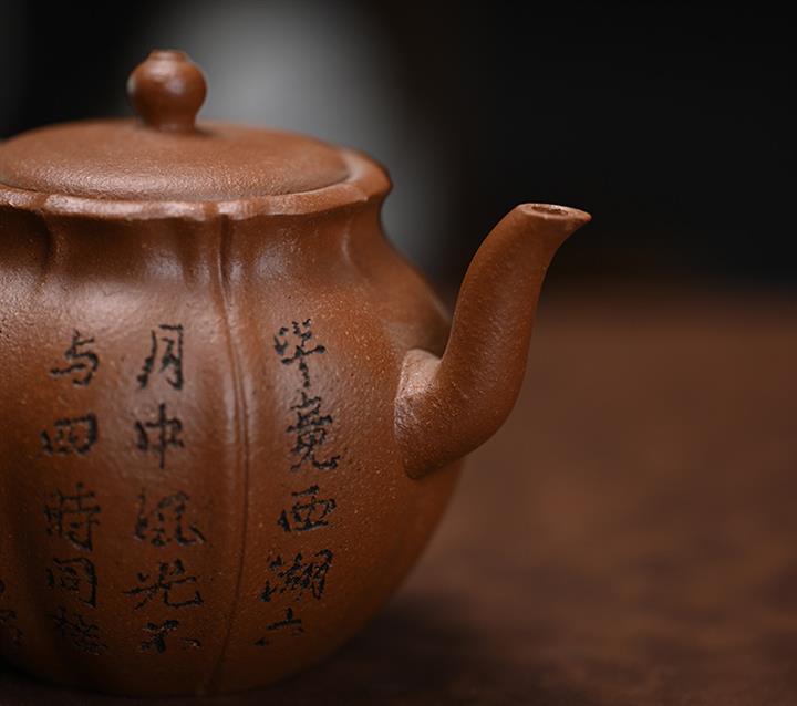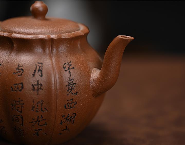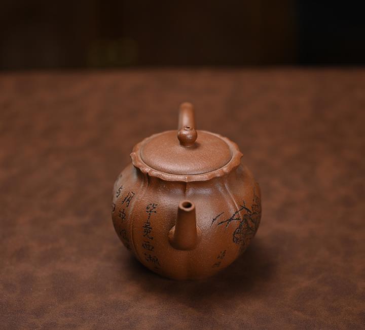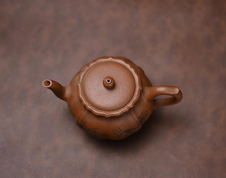 原礦降坡泥刻繪筋紋荷趣茶壺POT7748