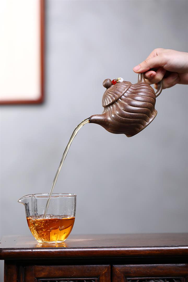【作品介紹】此款壺形線條流暢,壺把,壺嘴,壺身壹氣呵成栩栩如生,是收藏把玩的好壺,泥料色澤古樸典雅,日久使用,漸露鋒芒,養成變化快,溫潤莊重,用其泡茶,使用的年代久,壺身就溫潤,泡出來的茶湯也就醇郁芳馨。