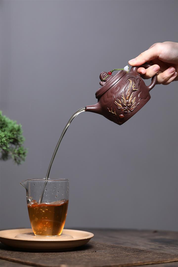 原礦老紫泥浮雕祥龍戲珠茶壺POT7734