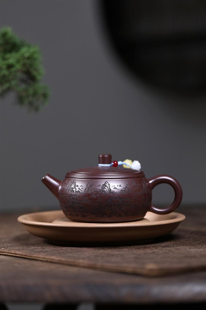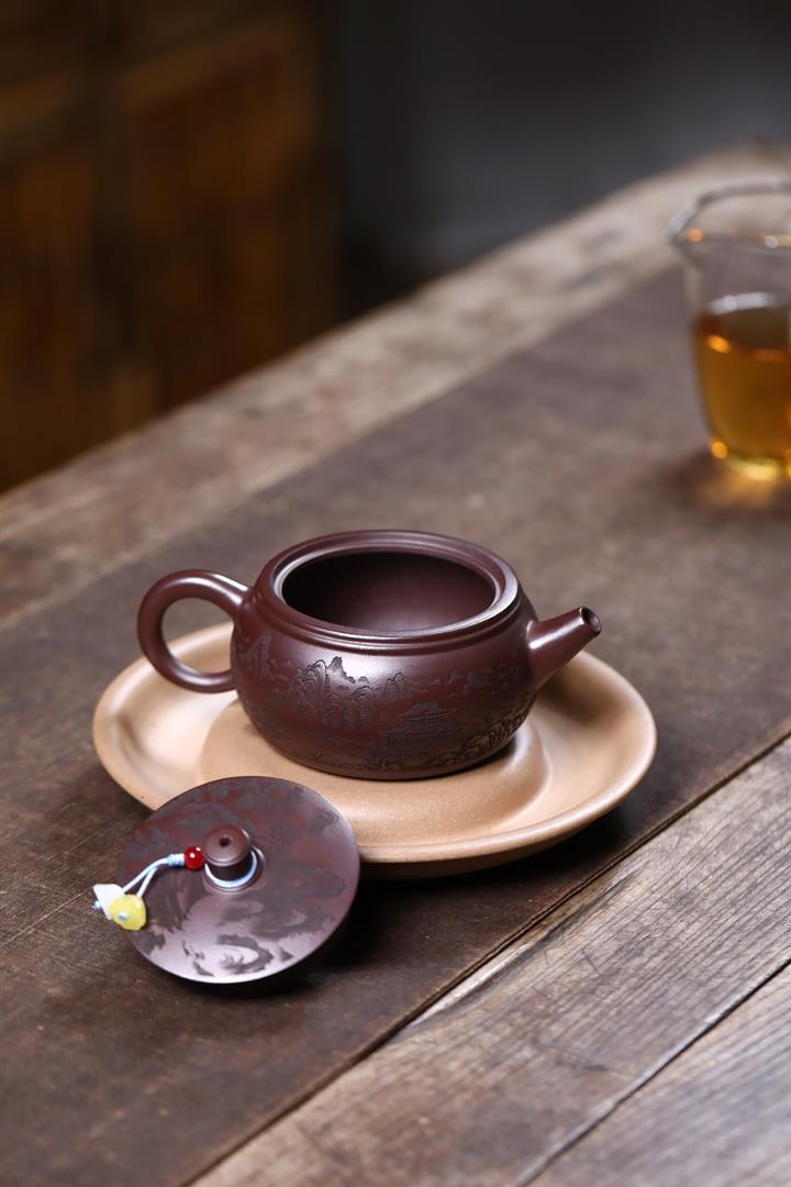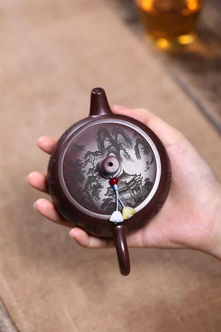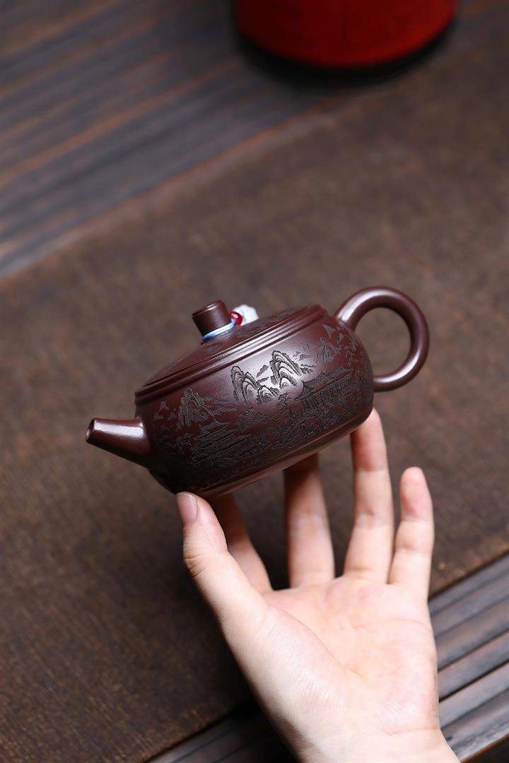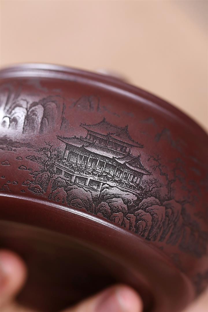原礦紫泥山水樓閣井欄茶壺POT7916