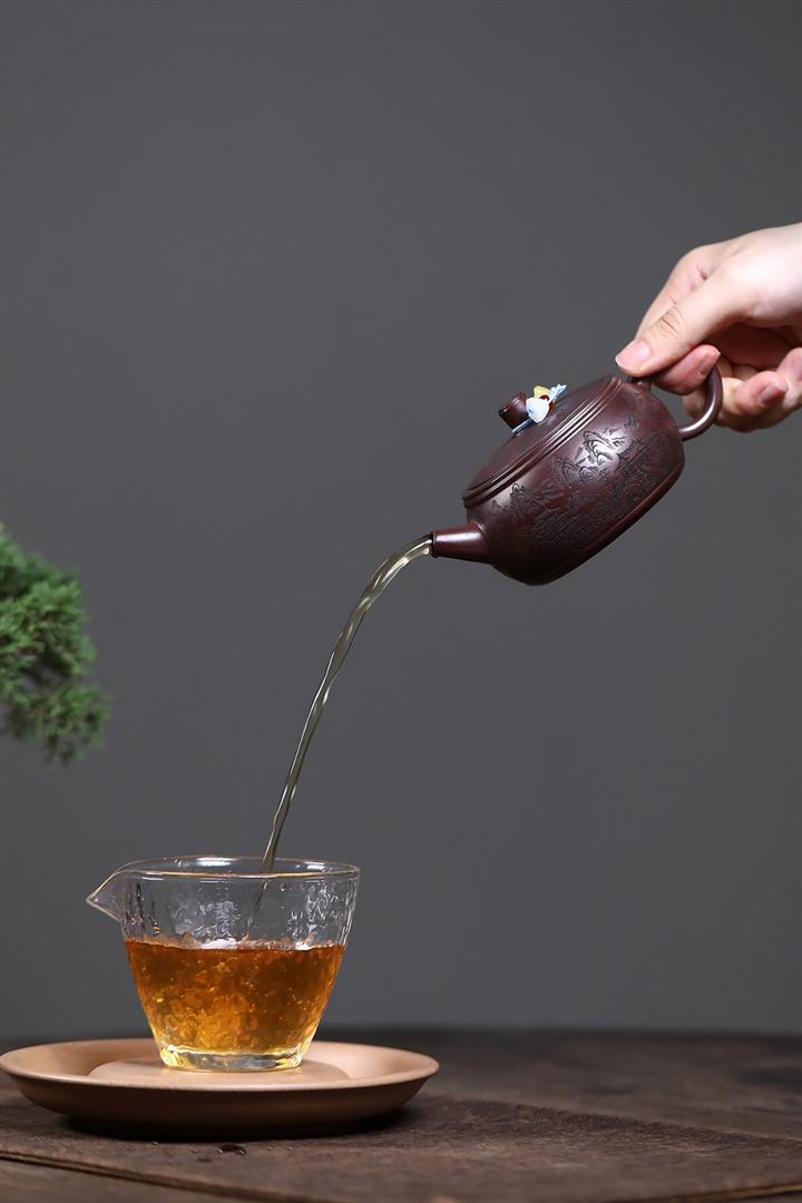 原礦紫泥仙鶴呈祥漢瓦茶壺POT7912
