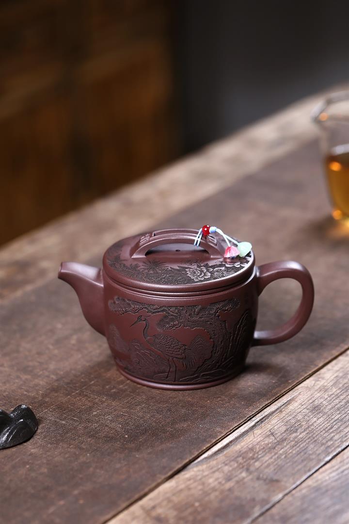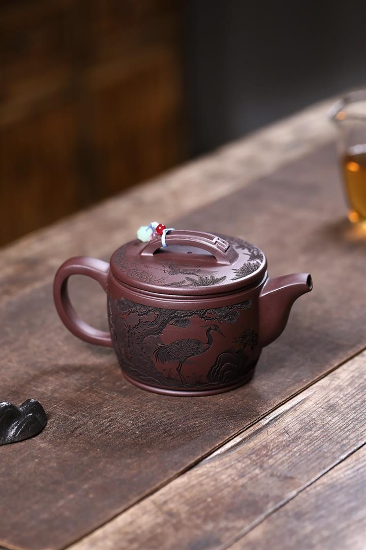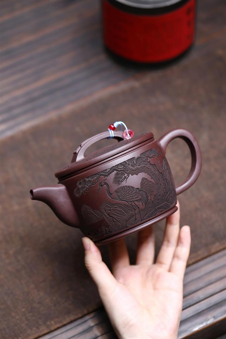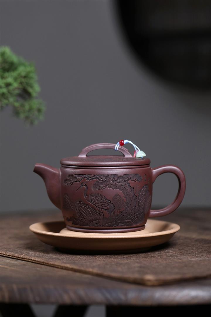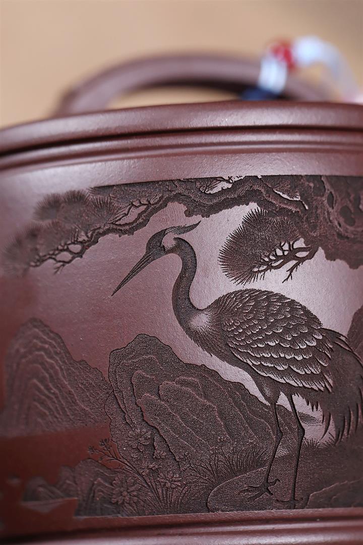 原礦紫泥仙鶴呈祥漢瓦茶壺POT7912
