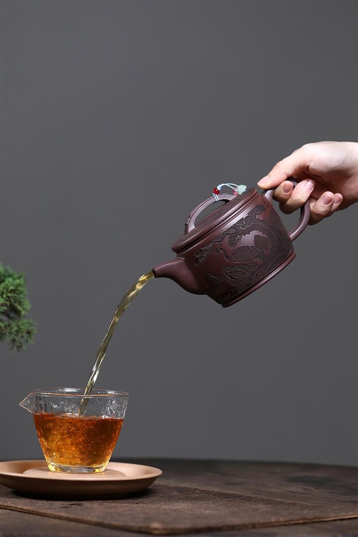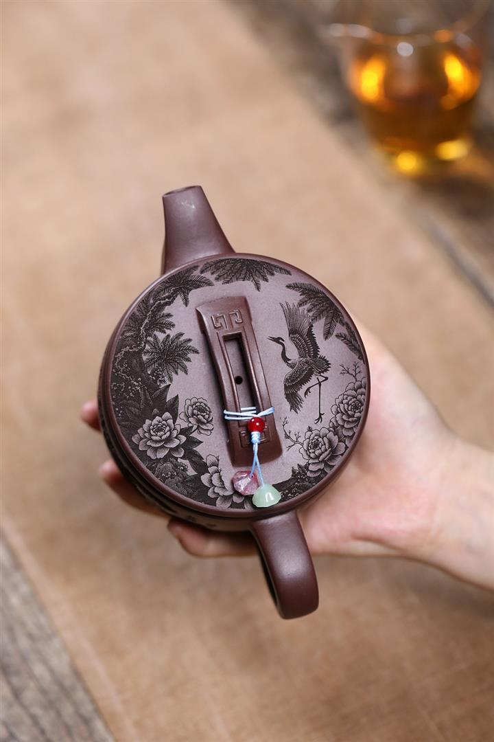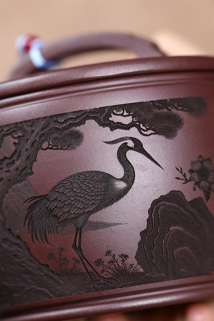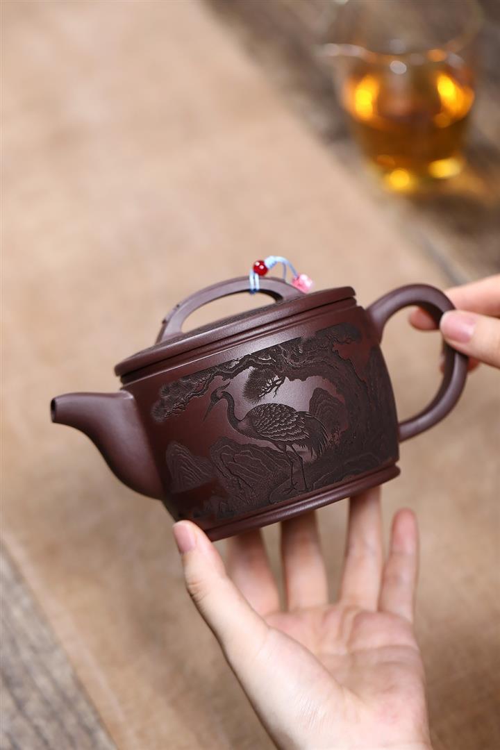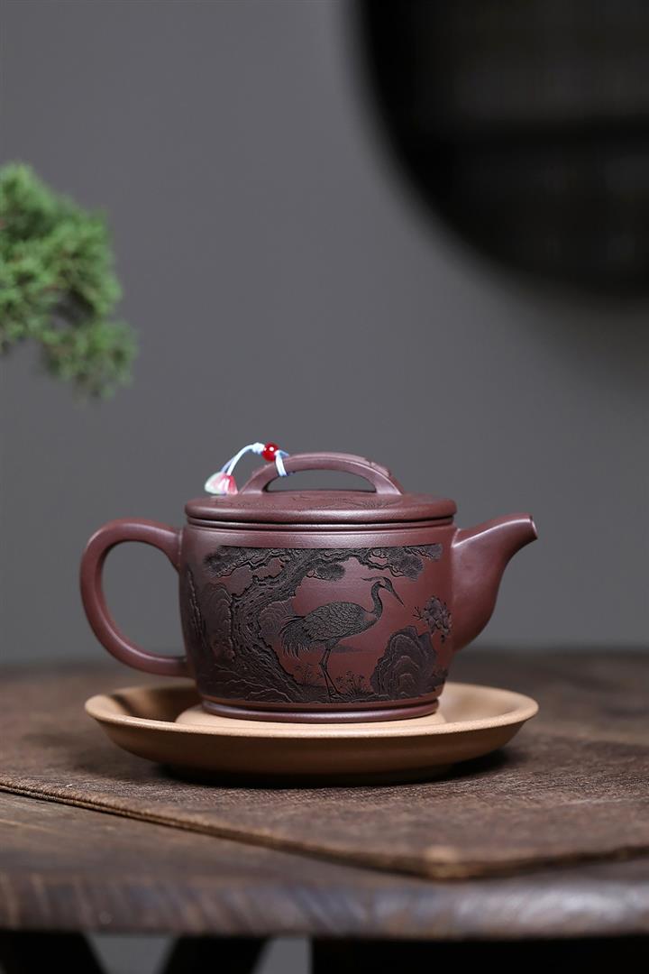原礦紫泥仙鶴呈祥漢瓦茶壺POT7912