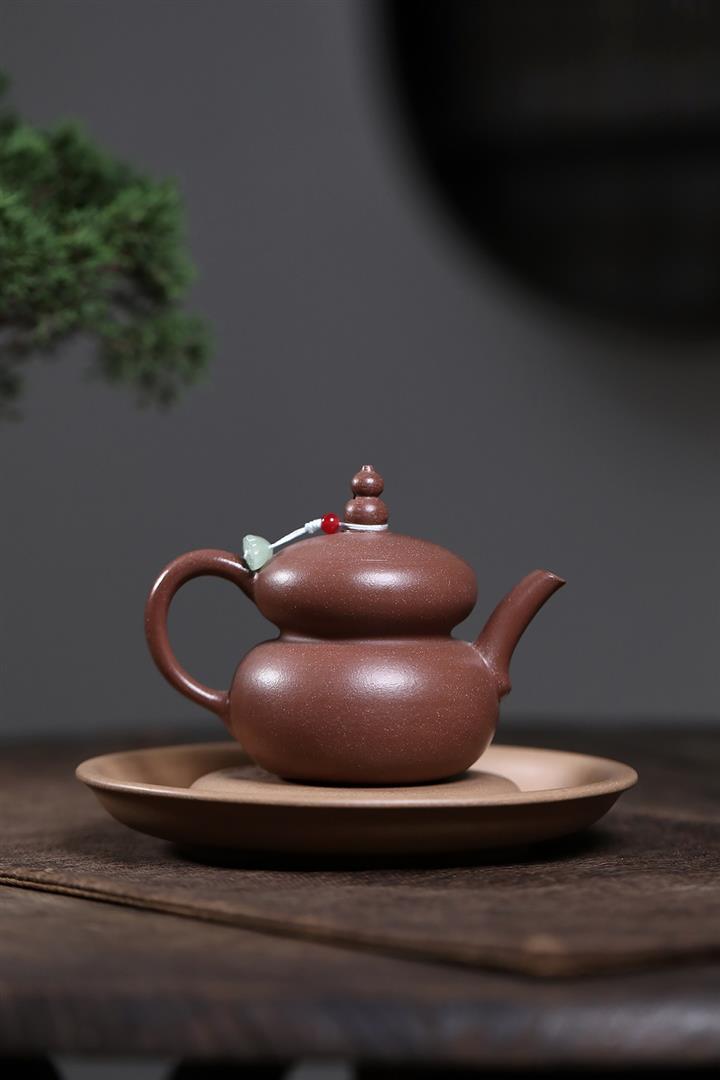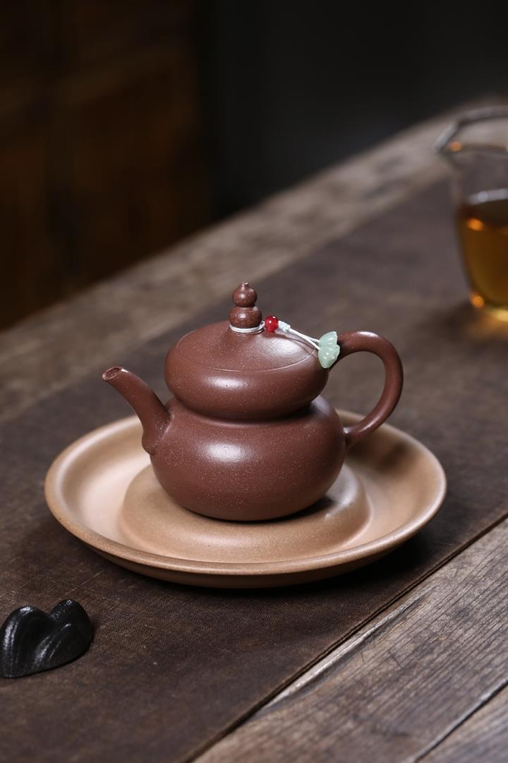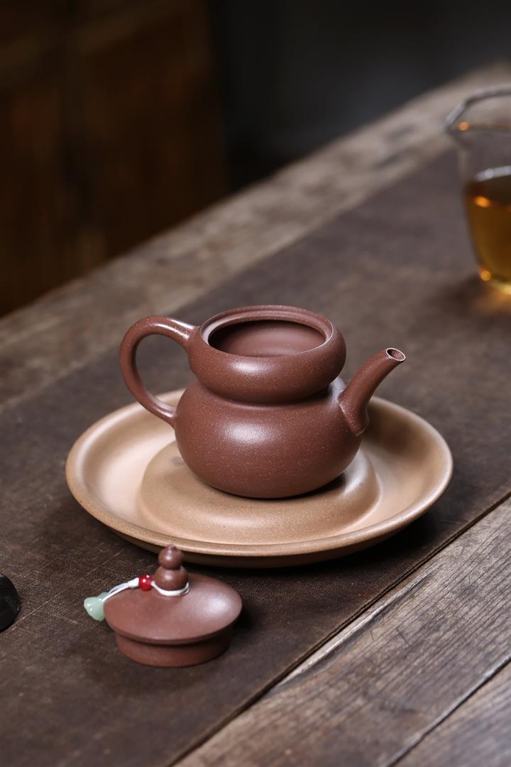 【泥料特點】砂土氣重,似淳實農民,日久使用,漸露鋒芒,養成變化,溫潤莊重。紫砂是壹種雙重氣孔結構的多孔性材質,氣孔微細,密度高。用紫砂壺沏茶,不失原味,且香不渙散,得茶之真香真味。紫砂使用越久,壺身色澤越發光亮照人,氣韻溫雅。紫砂壺長久使用器身會因撫摸擦拭,變得越發溫潤光澤。