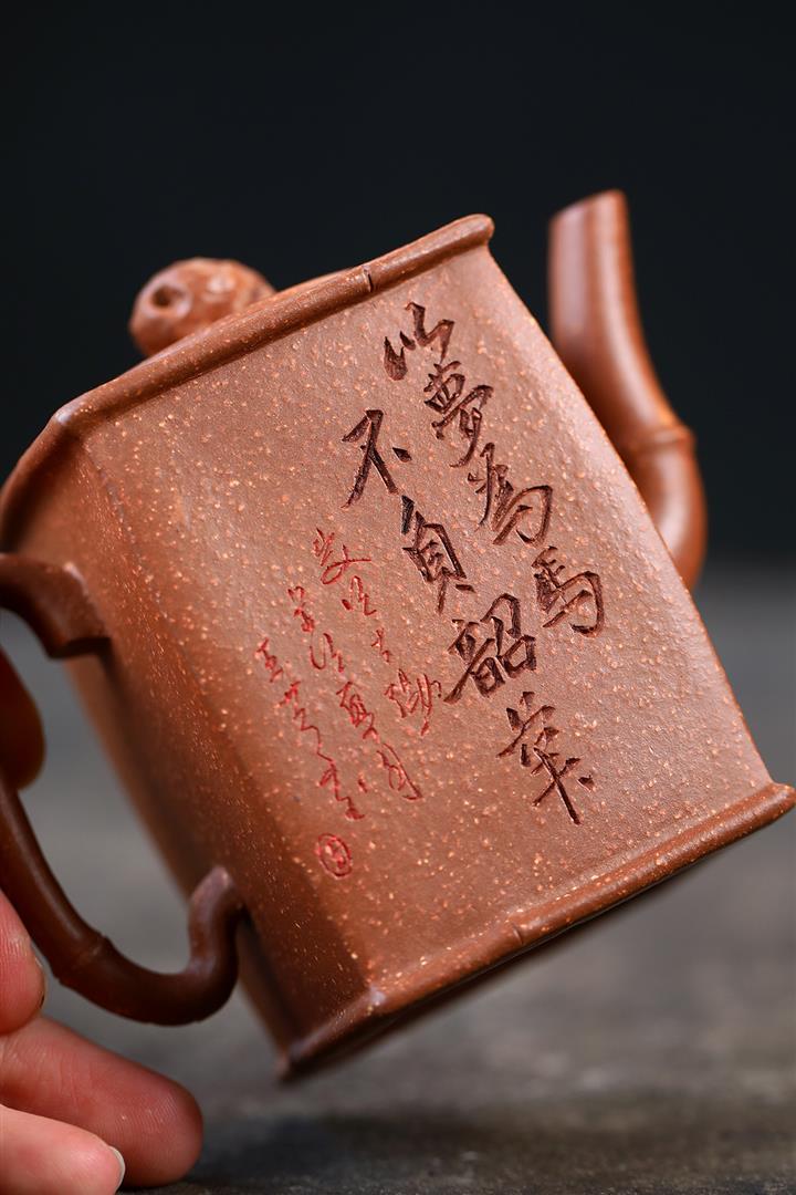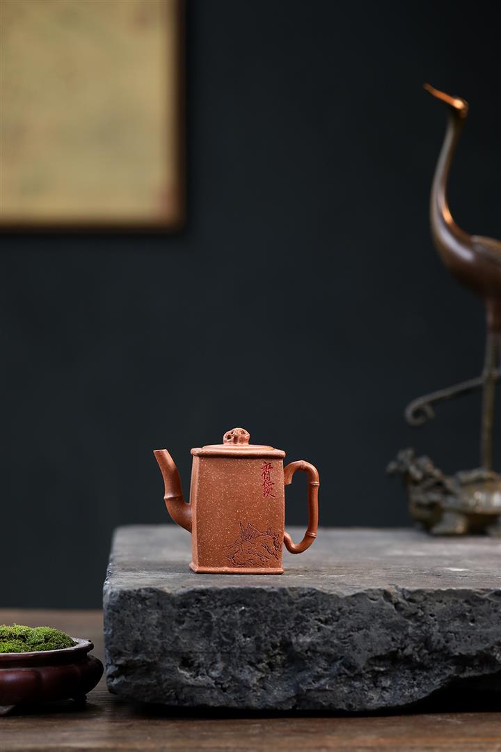 【作品介紹】此款壺形線條流暢,壺把,壺嘴,壺身壹氣呵成栩栩如生,是收藏把玩的好壺,泥料色澤古樸典雅,日久使用,漸露鋒芒,養成變化快,溫潤莊重,用其泡茶,使用的年代久,壺身就溫潤,泡出來的茶湯也就醇郁芳馨。