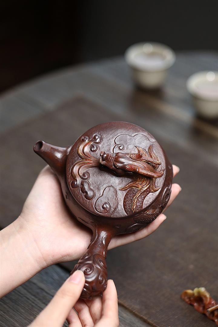 原礦綠泥浮雕魚躍龍門泡茶壺POT7901