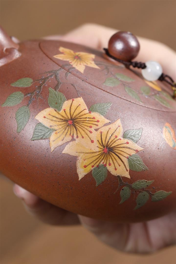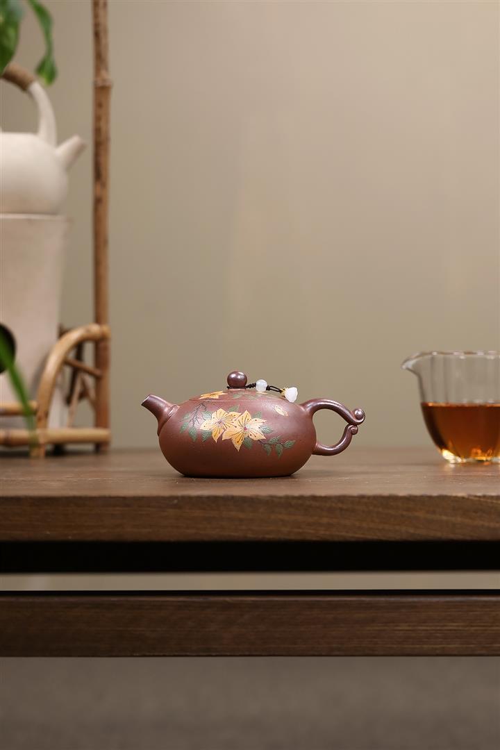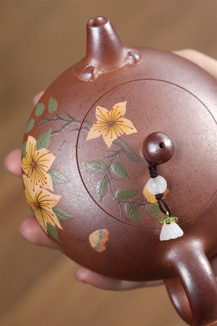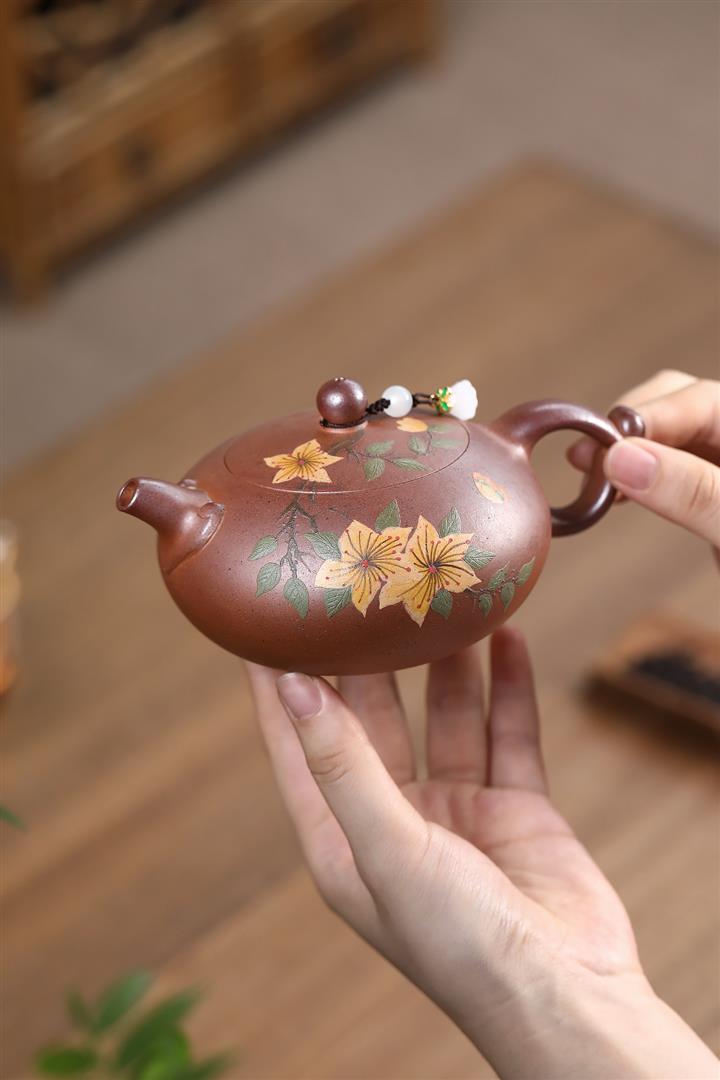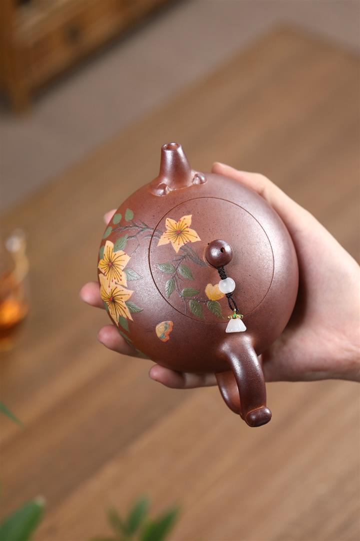 【作品介紹】此款壺形線條流暢,壺把,壺嘴,壺身壹氣呵成栩栩如生,是收藏把玩的好壺,泥料色澤古樸典雅,日久使用,漸露鋒芒,養成變化快,溫潤莊重,用其泡茶,使用的年代久,壺身就溫潤,泡出來的茶湯也就醇郁芳馨。