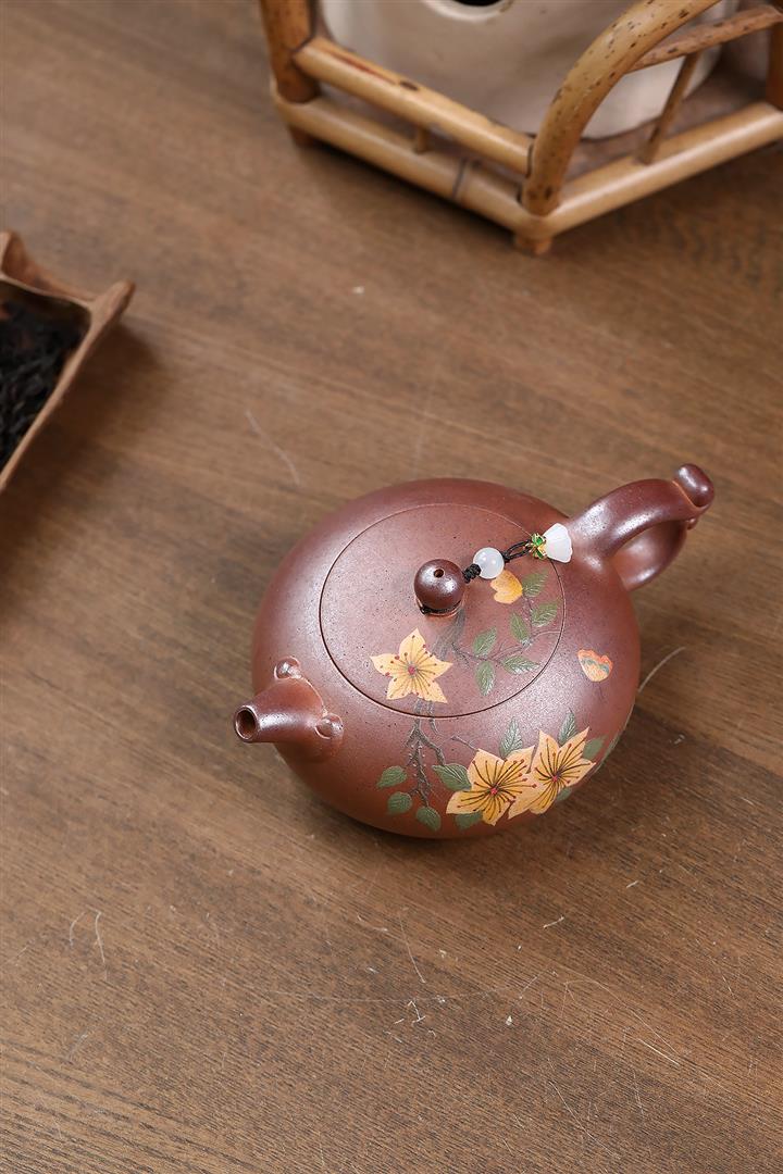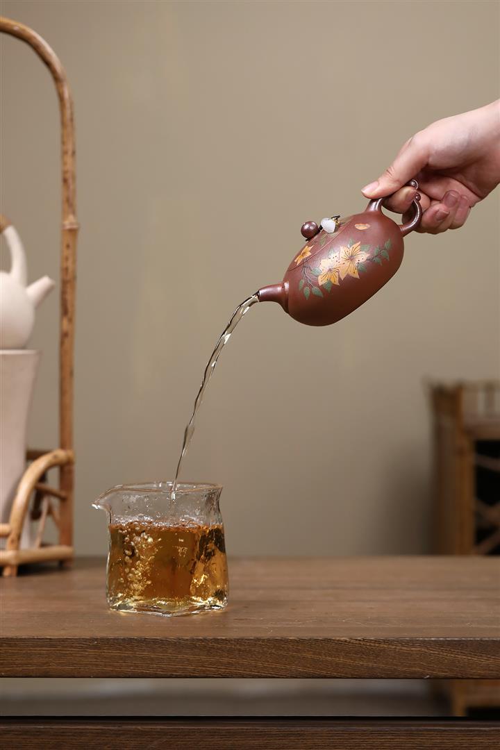 【泥料特點】砂土氣重,似淳實農民,日久使用,漸露鋒芒,養成變化,溫潤莊重。紫砂是壹種雙重氣孔結構的多孔性材質,氣孔微細,密度高。用紫砂壺沏茶,不失原味,且香不渙散,得茶之真香真味。紫砂使用越久,壺身色澤越發光亮照人,氣韻溫雅。紫砂壺長久使用器身會因撫摸擦拭,變得越發溫潤光澤。