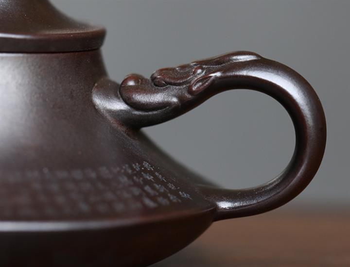 【泥料特點】砂土氣重,似淳實農民,日久使用,漸露鋒芒,養成變化,溫潤莊重。紫砂是壹種雙重氣孔結構的多孔性材質,氣孔微細,密度高。用紫砂壺沏茶,不失原味,且香不渙散,得茶之真香真味。紫砂使用越久,壺身色澤越發光亮照人,氣韻溫雅。紫砂壺長久使用器身會因撫摸擦拭,變得越發溫潤光澤。