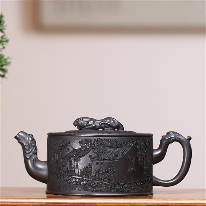原礦玄鐵石黃臥虎藏龍壺POT7891