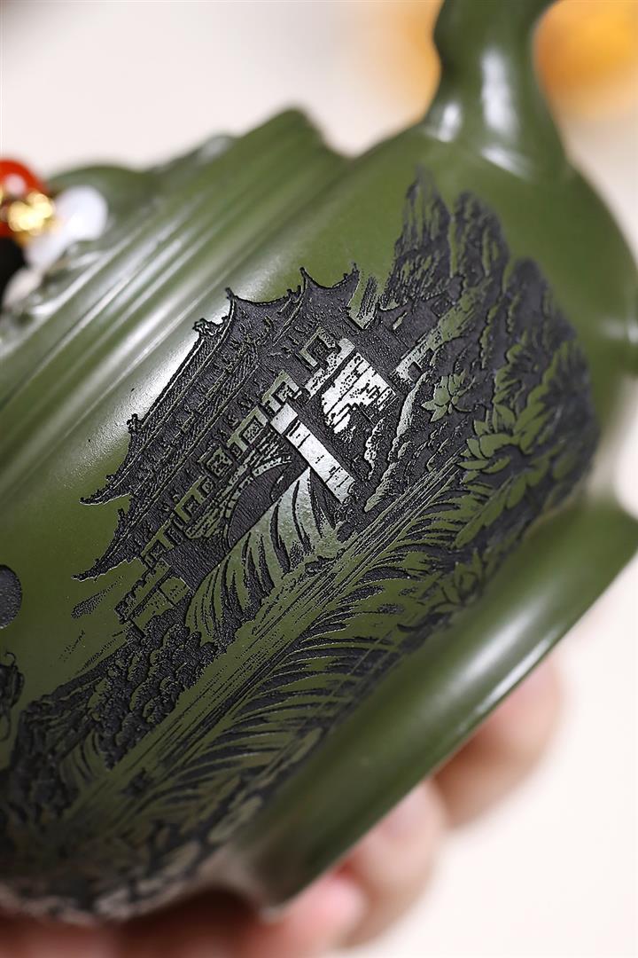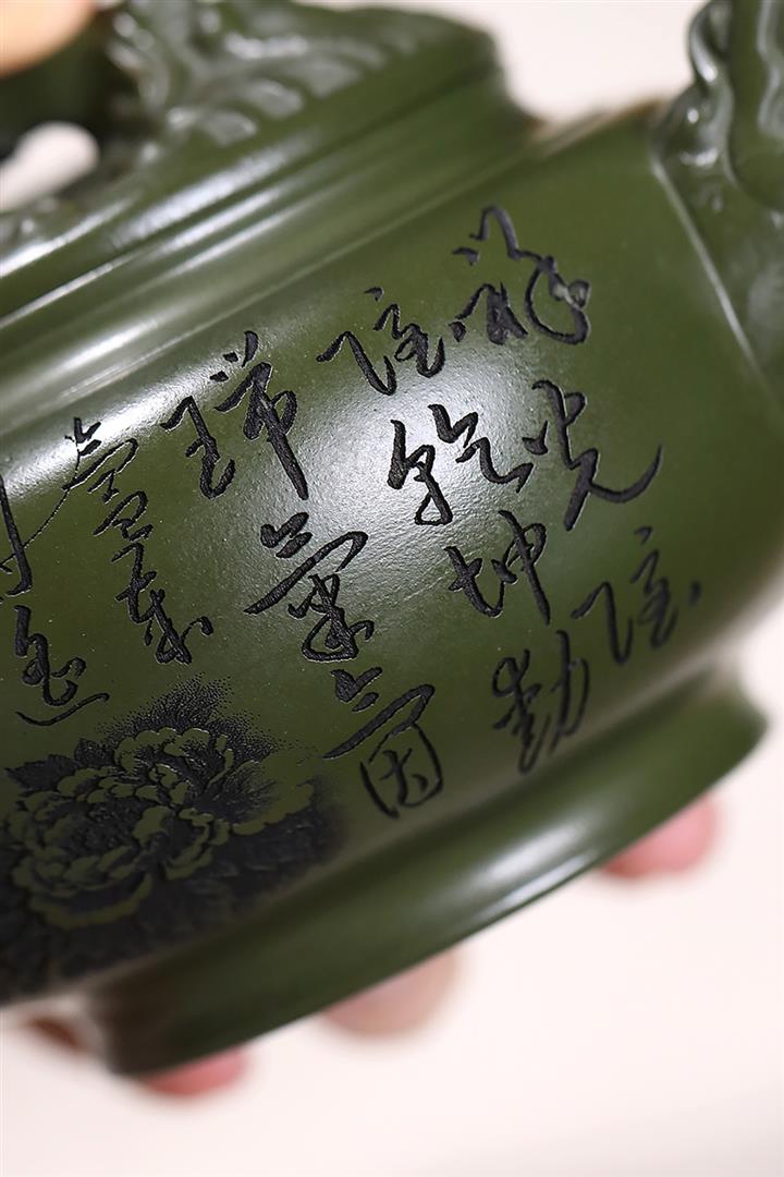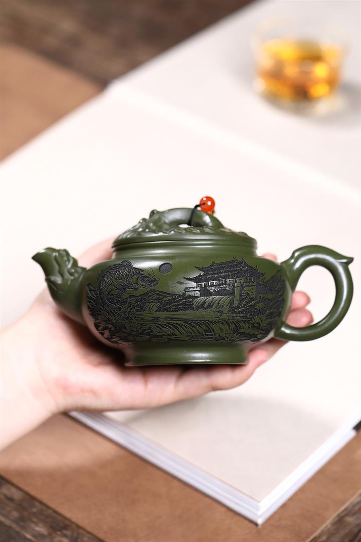 原礦綠泥浮雕魚躍龍門泡茶壺POT7901
