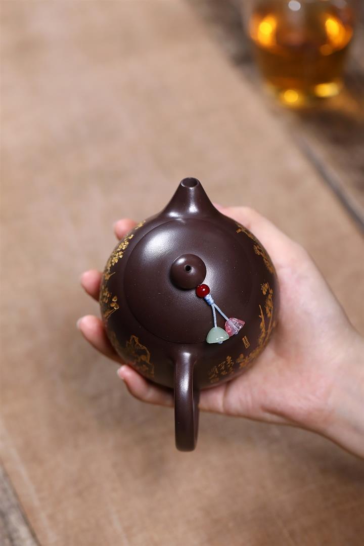 【作品介紹】此款壺形線條流暢,壺把,壺嘴,壺身壹氣呵成栩栩如生,是收藏把玩的好壺,泥料色澤古樸典雅,日久使用,漸露鋒芒,養成變化快,溫潤莊重,用其泡茶,使用的年代久,壺身就溫潤,泡出來的茶湯也就醇郁芳馨。