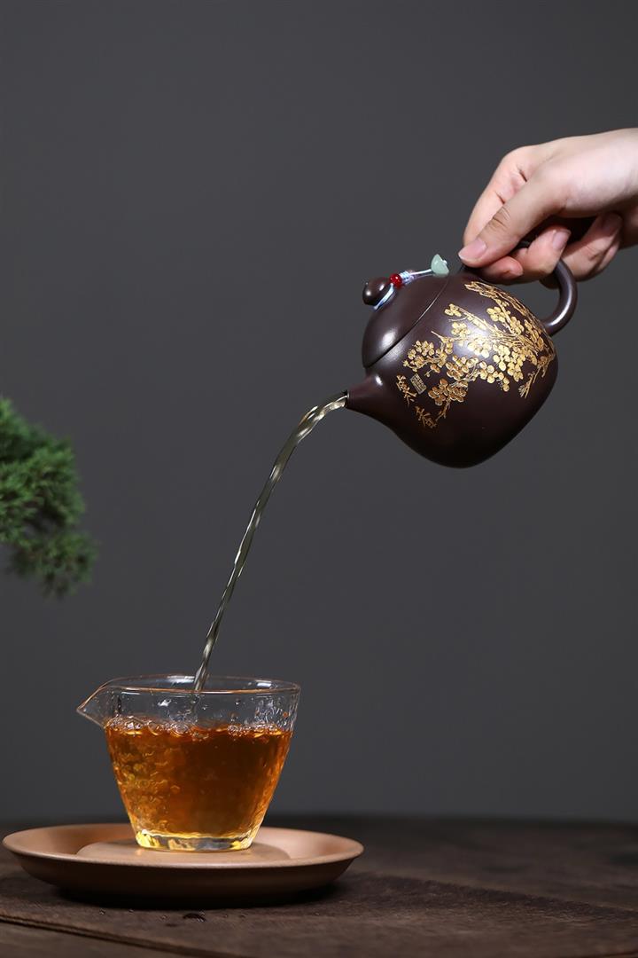 【泥料特點】砂土氣重,似淳實農民,日久使用,漸露鋒芒,養成變化,溫潤莊重。紫砂是壹種雙重氣孔結構的多孔性材質,氣孔微細,密度高。用紫砂壺沏茶,不失原味,且香不渙散,得茶之真香真味。紫砂使用越久,壺身色澤越發光亮照人,氣韻溫雅。紫砂壺長久使用器身會因撫摸擦拭,變得越發溫潤光澤。