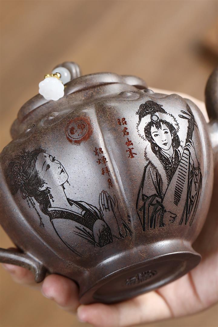 【作品介紹】此款壺形線條流暢,壺把,壺嘴,壺身壹氣呵成栩栩如生,是收藏把玩的好壺,泥料色澤古樸典雅,日久使用,漸露鋒芒,養成變化快,溫潤莊重,用其泡茶,使用的年代久,壺身就溫潤,泡出來的茶湯也就醇郁芳馨。