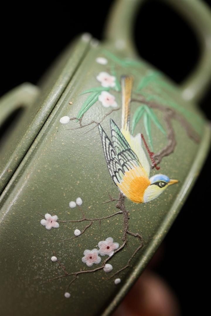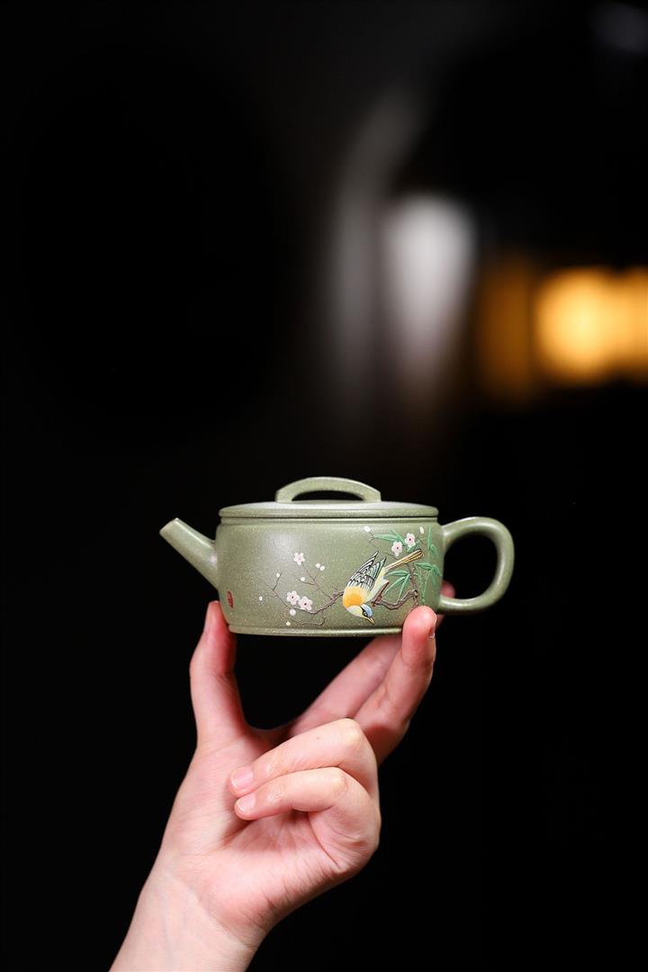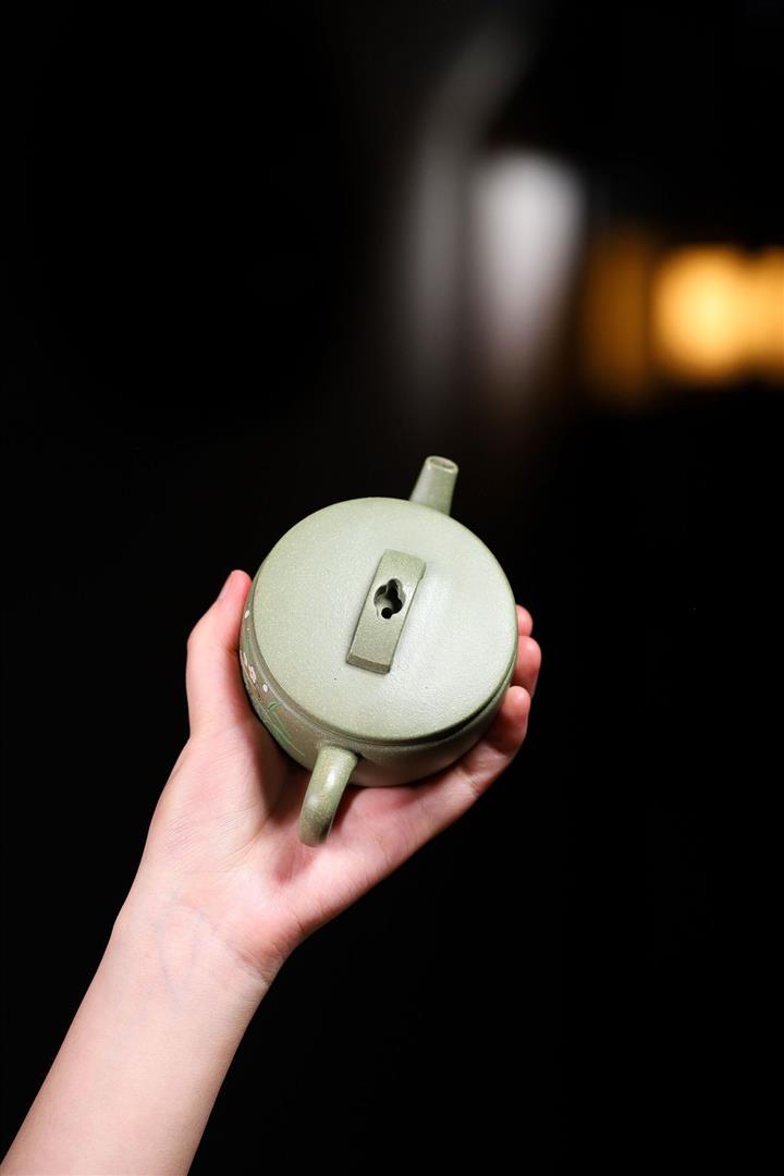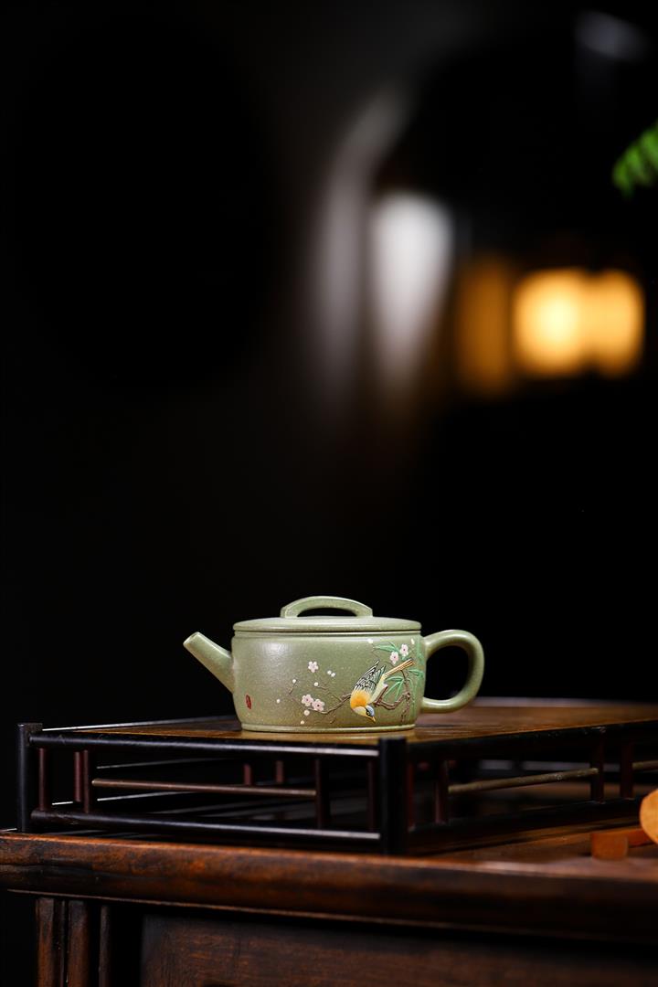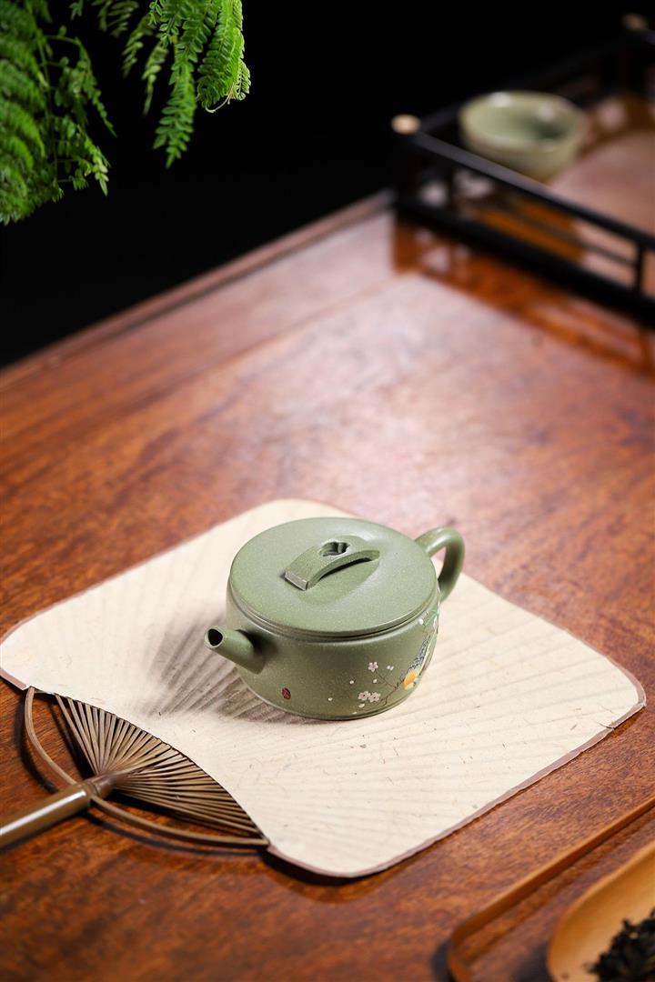原礦豆青泥彩繪漢瓦茶壺POT7877