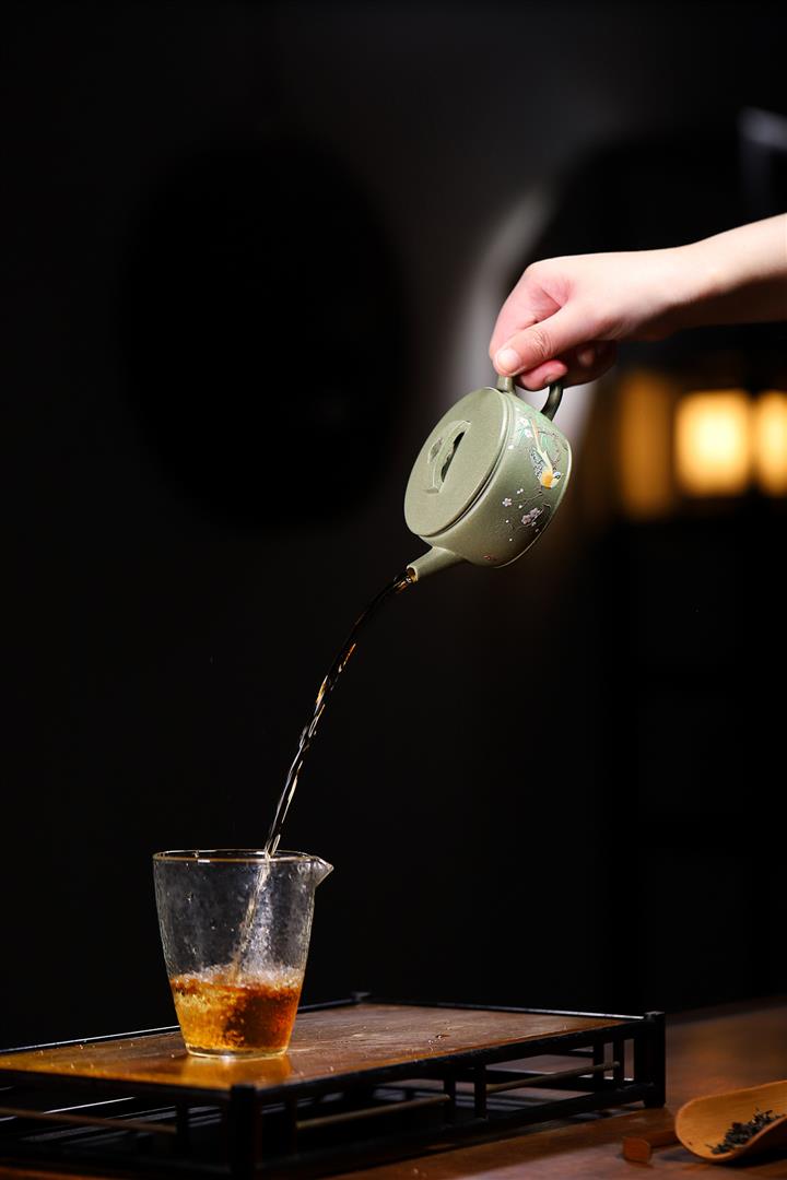 【泥料特點】砂土氣重,似淳實農民,日久使用,漸露鋒芒,養成變化,溫潤莊重。紫砂是壹種雙重氣孔結構的多孔性材質,氣孔微細,密度高。用紫砂壺沏茶,不失原味,且香不渙散,得茶之真香真味。紫砂使用越久,壺身色澤越發光亮照人,氣韻溫雅。紫砂壺長久使用器身會因撫摸擦拭,變得越發溫潤光澤。