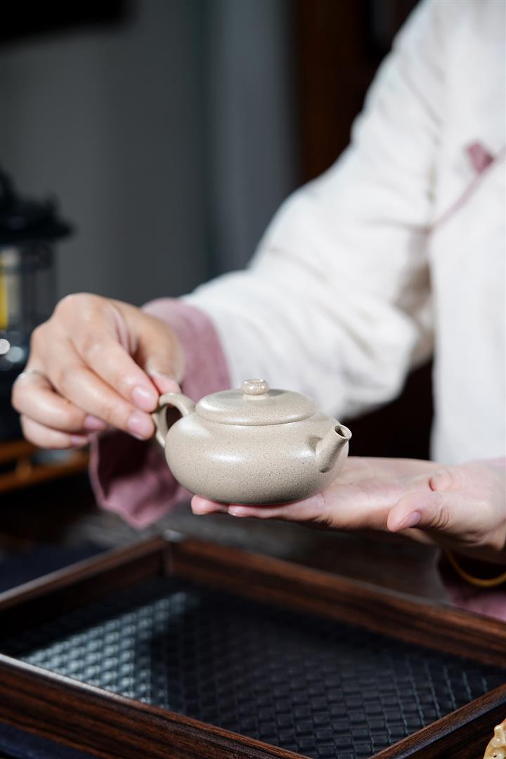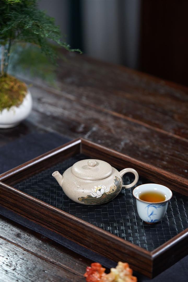【泥料特點】砂土氣重,似淳實農民,日久使用,漸露鋒芒,養成變化,溫潤莊重。紫砂是壹種雙重氣孔結構的多孔性材質,氣孔微細,密度高。用紫砂壺沏茶,不失原味,且香不渙散,得茶之真香真味。紫砂使用越久,壺身色澤越發光亮照人,氣韻溫雅。紫砂壺長久使用器身會因撫摸擦拭,變得越發溫潤光澤。
