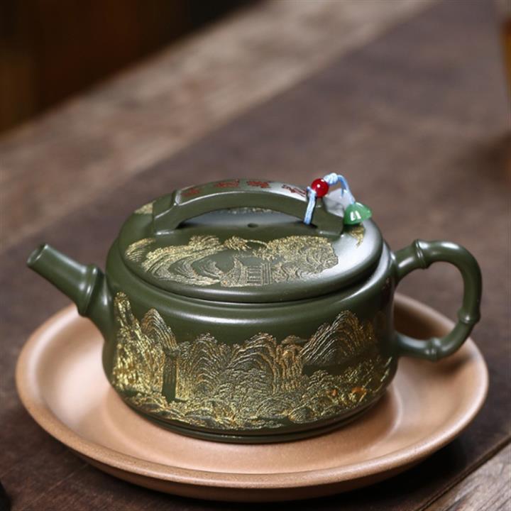 原礦綠泥千裏江山臥虎藏龍漢瓦壺POT7843
