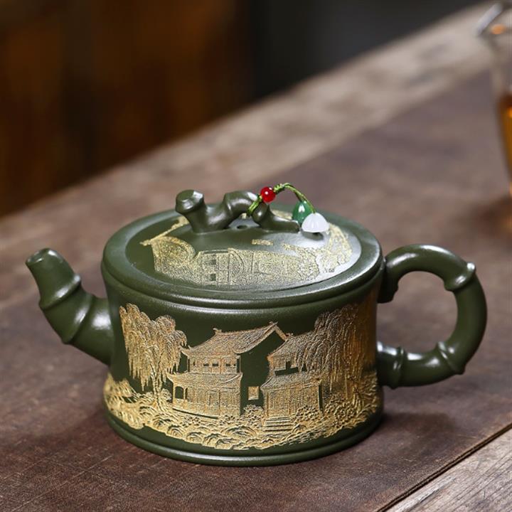 原礦綠泥花開富貴寒江泡茶壺POT7842