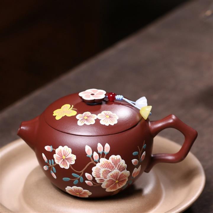 原礦玄鐵石黃琺瑯笑櫻泡茶壺POT7853