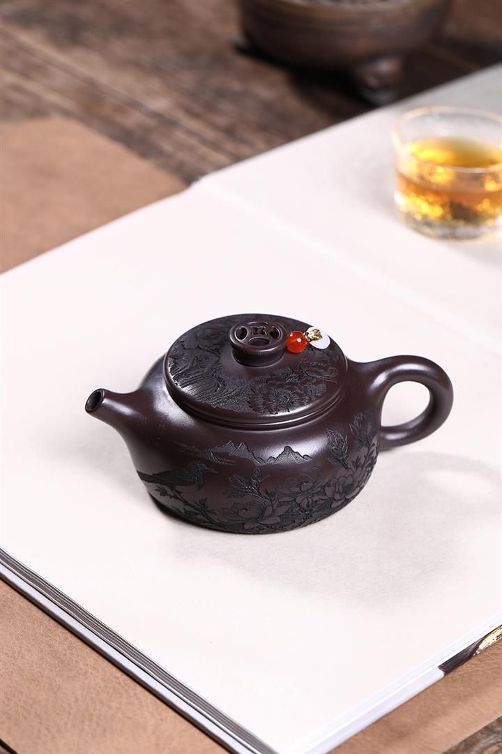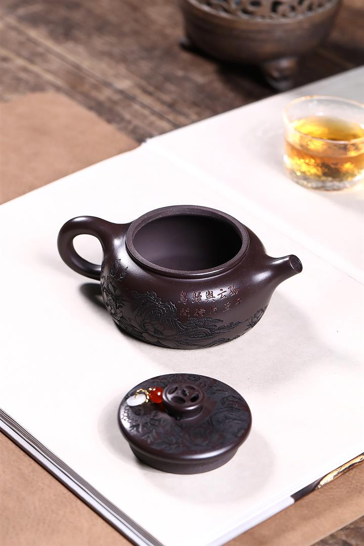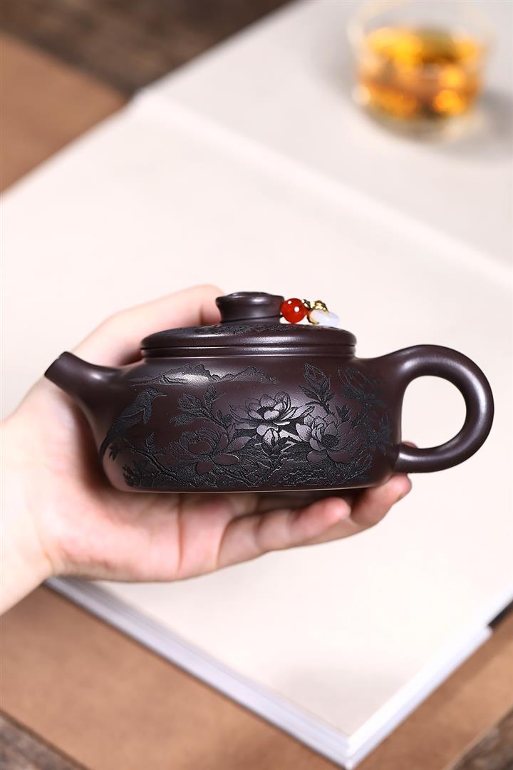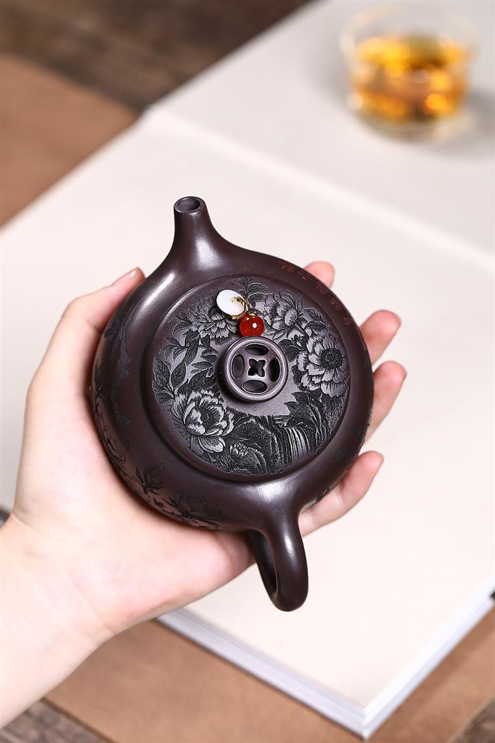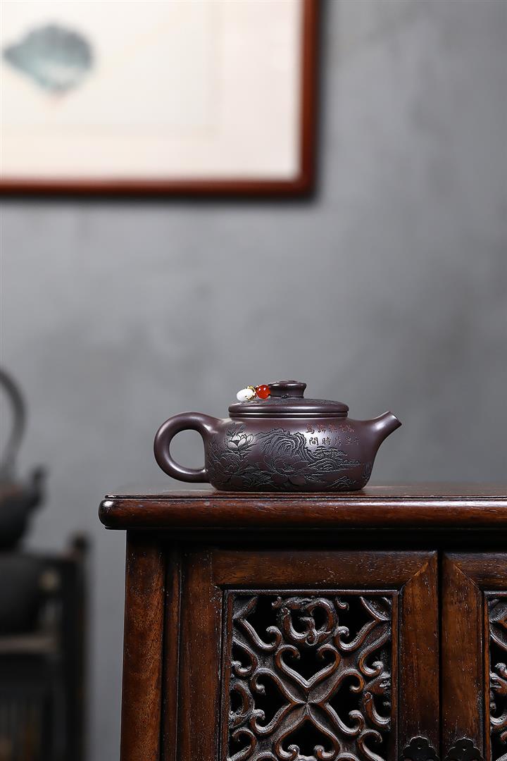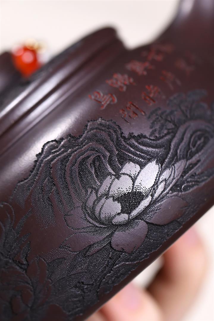 原礦大紅袍牡丹大口漢瓦茶壺POT7832
