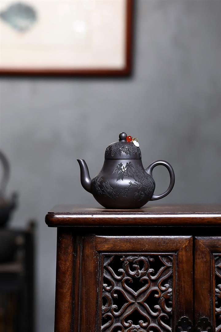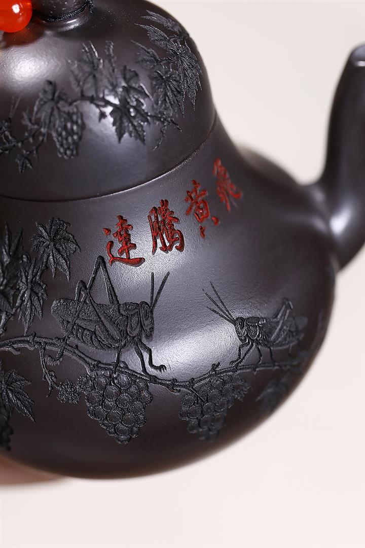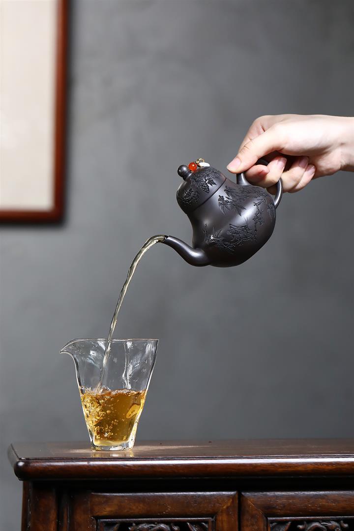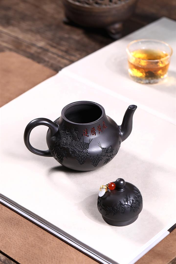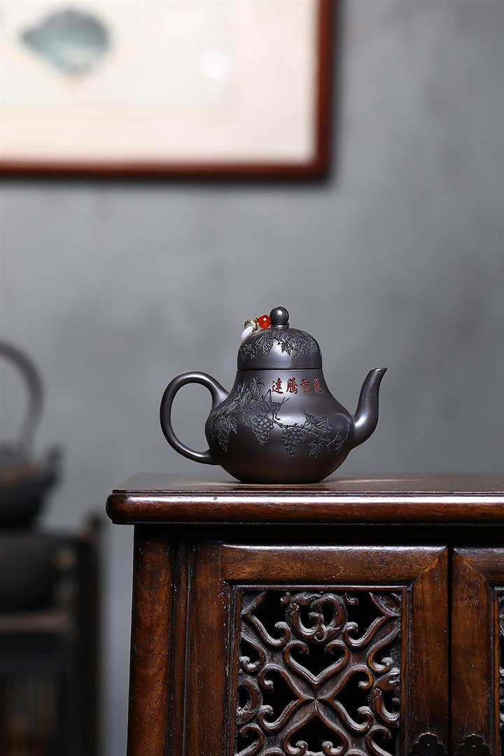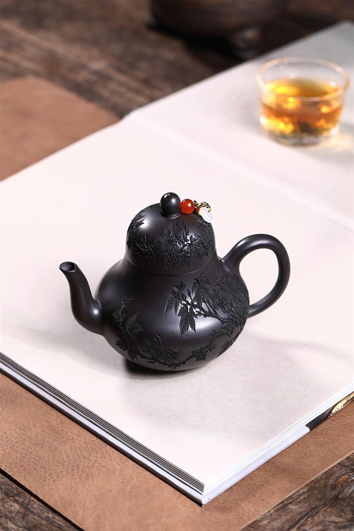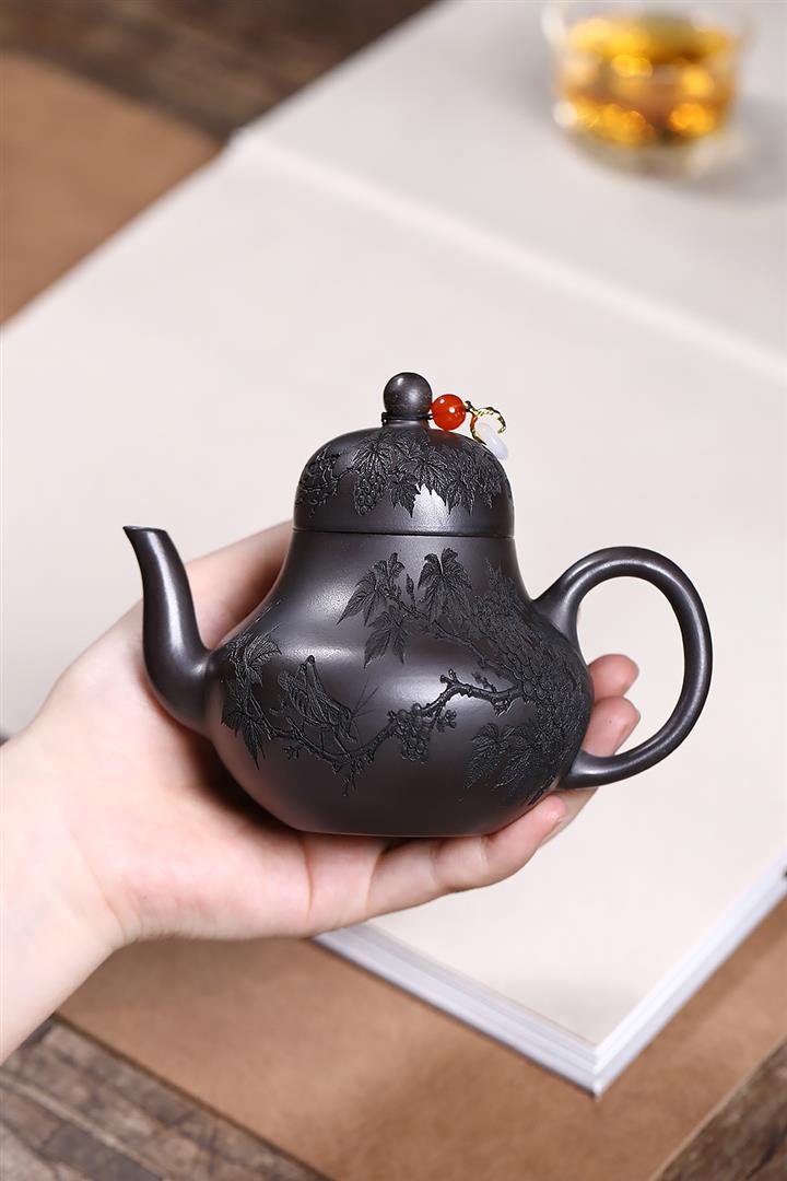 原礦紫泥滿刻納瓢泡茶壺POT7838