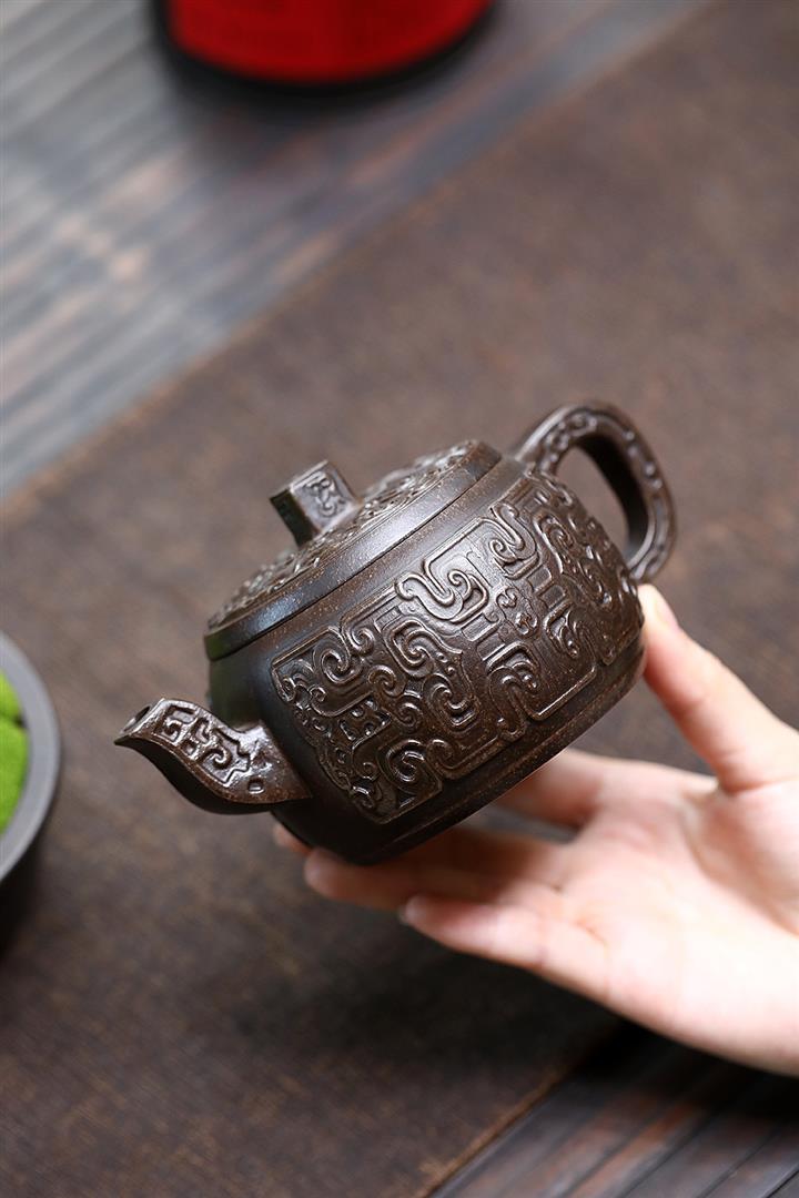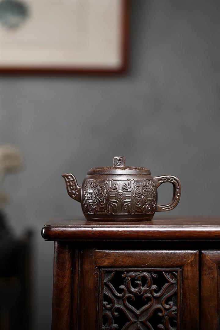 原礦紫泥滿刻納瓢泡茶壺POT7838