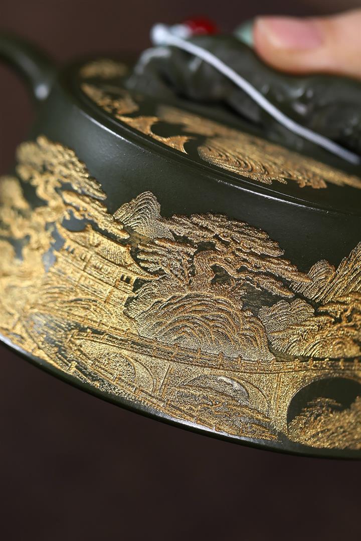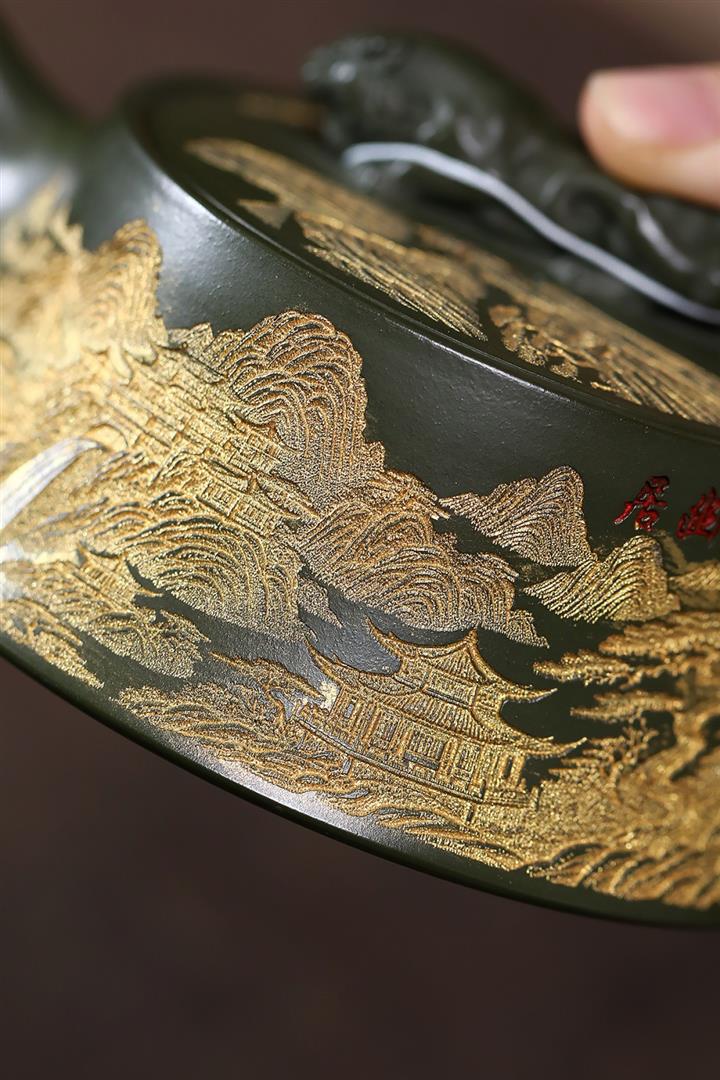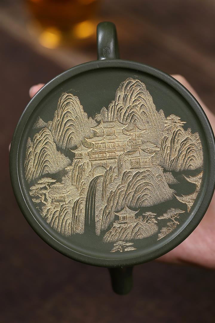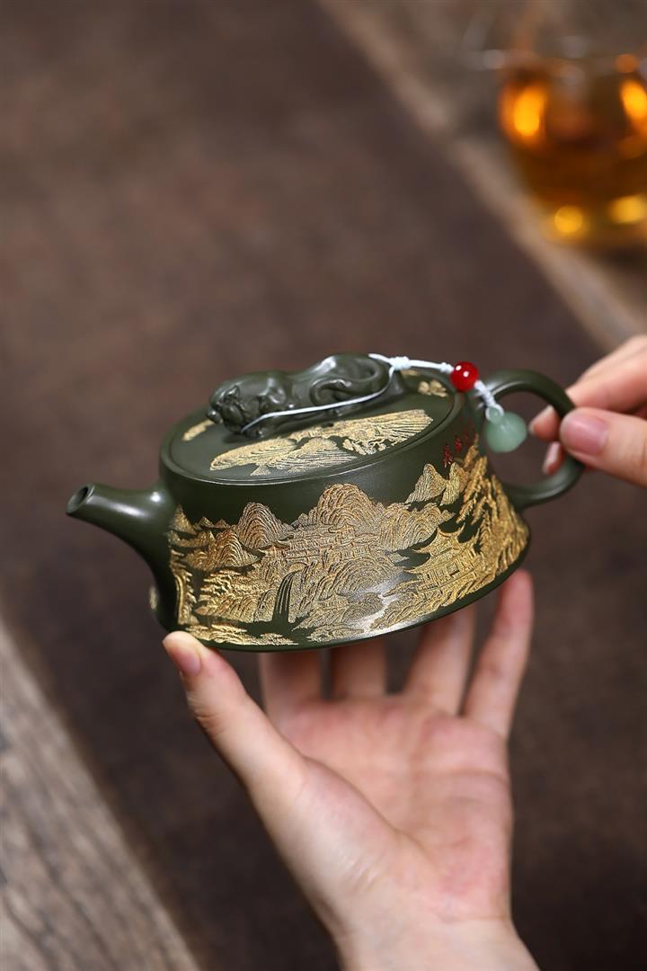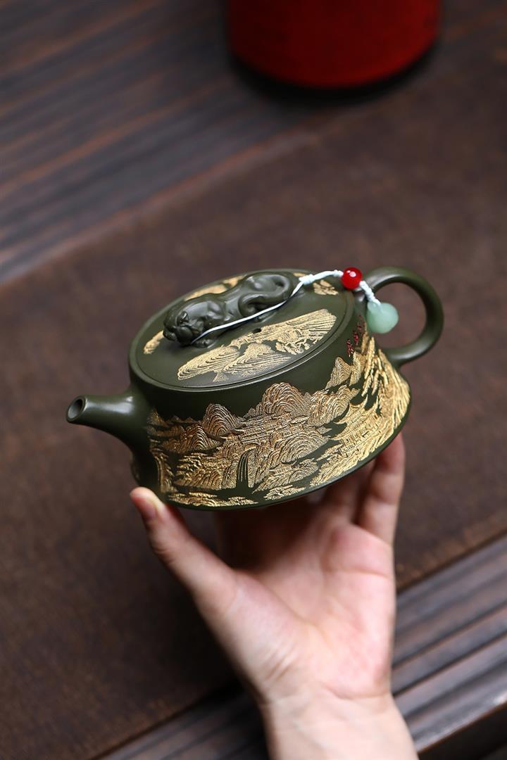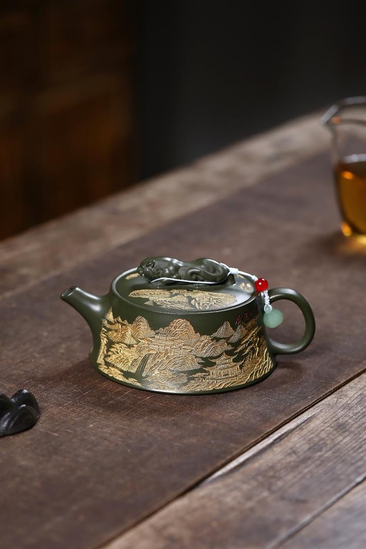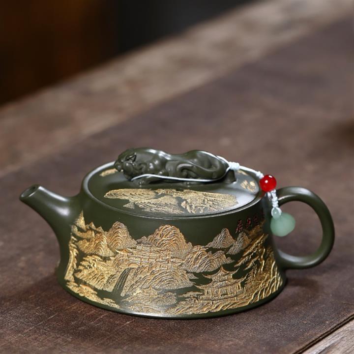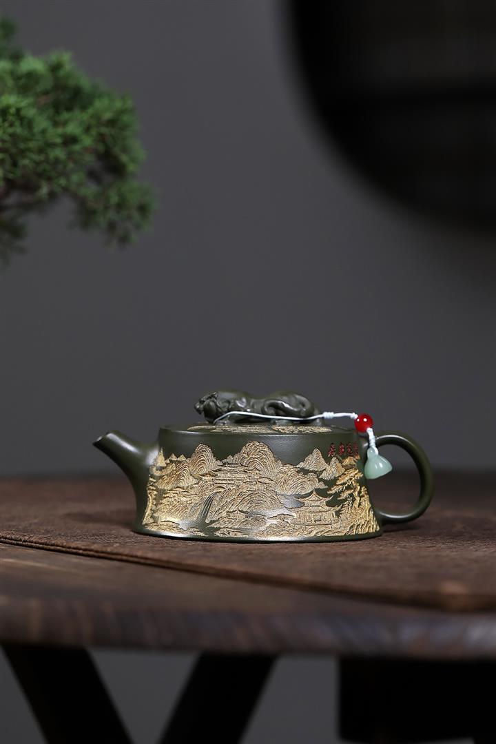 原礦綠泥千裏江山臥虎藏龍漢瓦壺POT7843