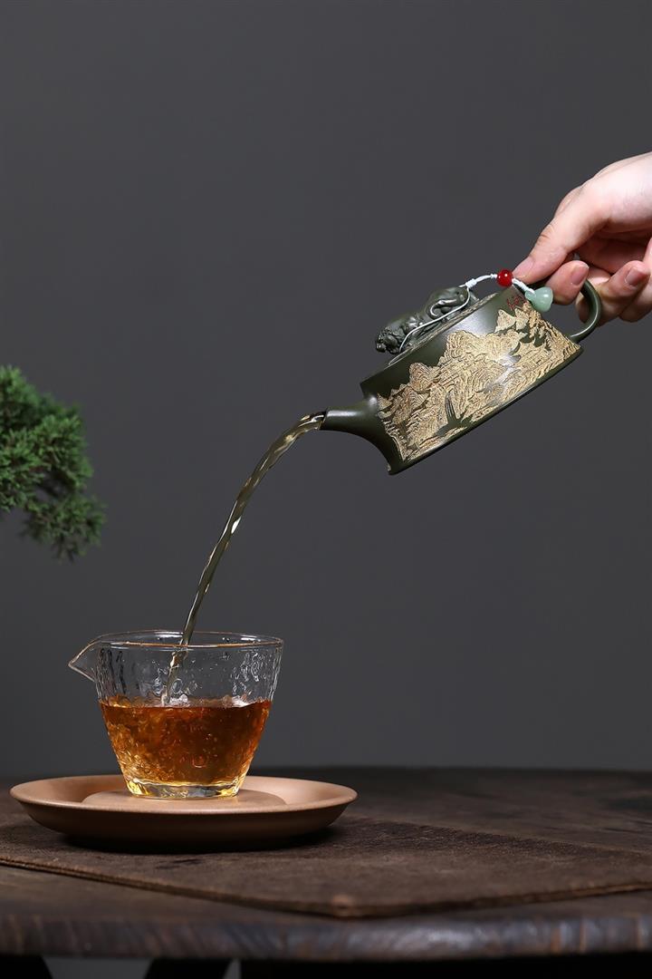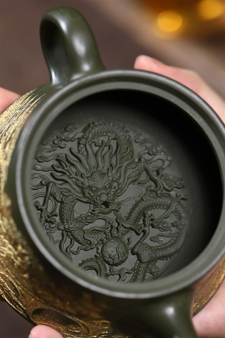 原礦綠泥臥虎藏龍內浮雕茶壺POT7844