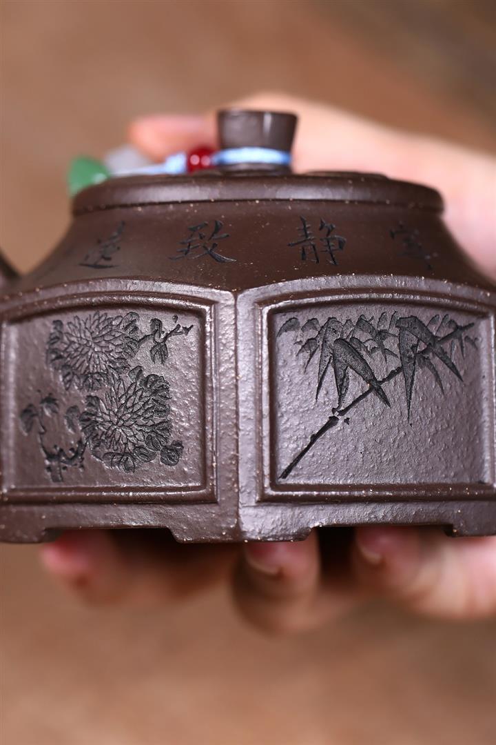原礦紫泥八方山水石瓢茶壺POT7834