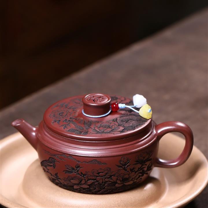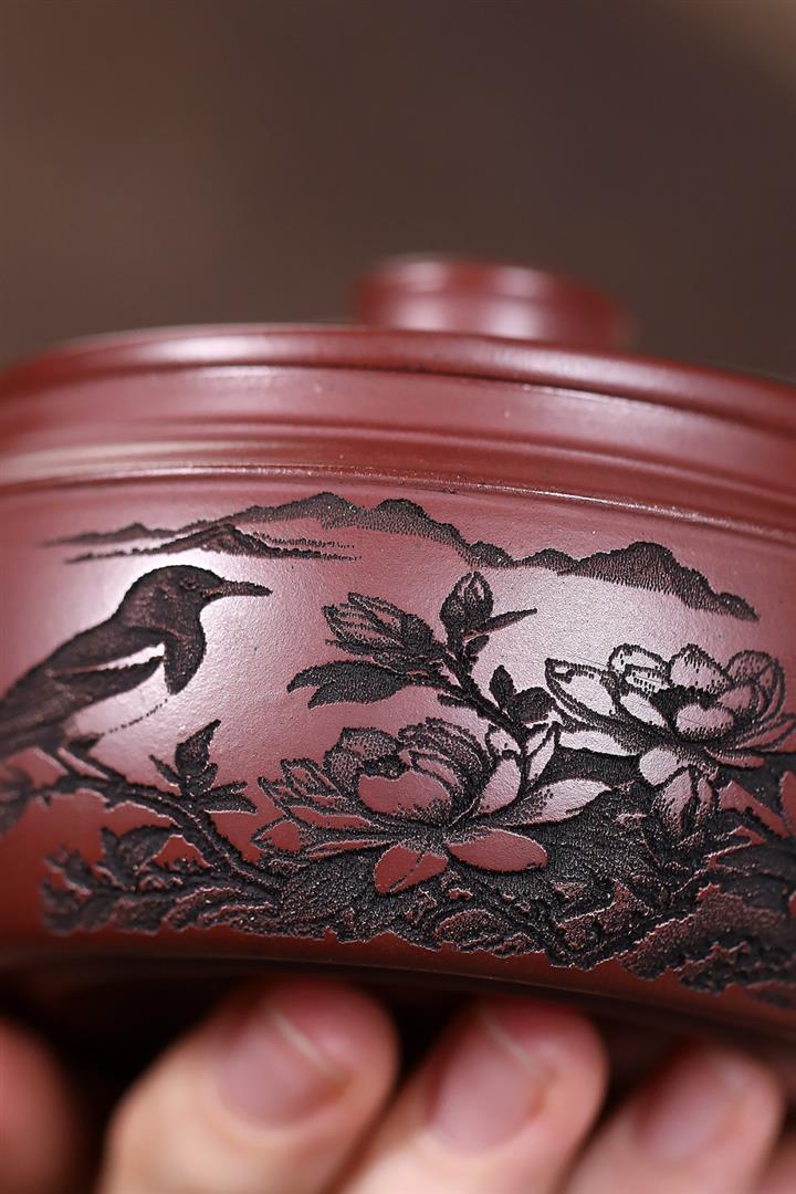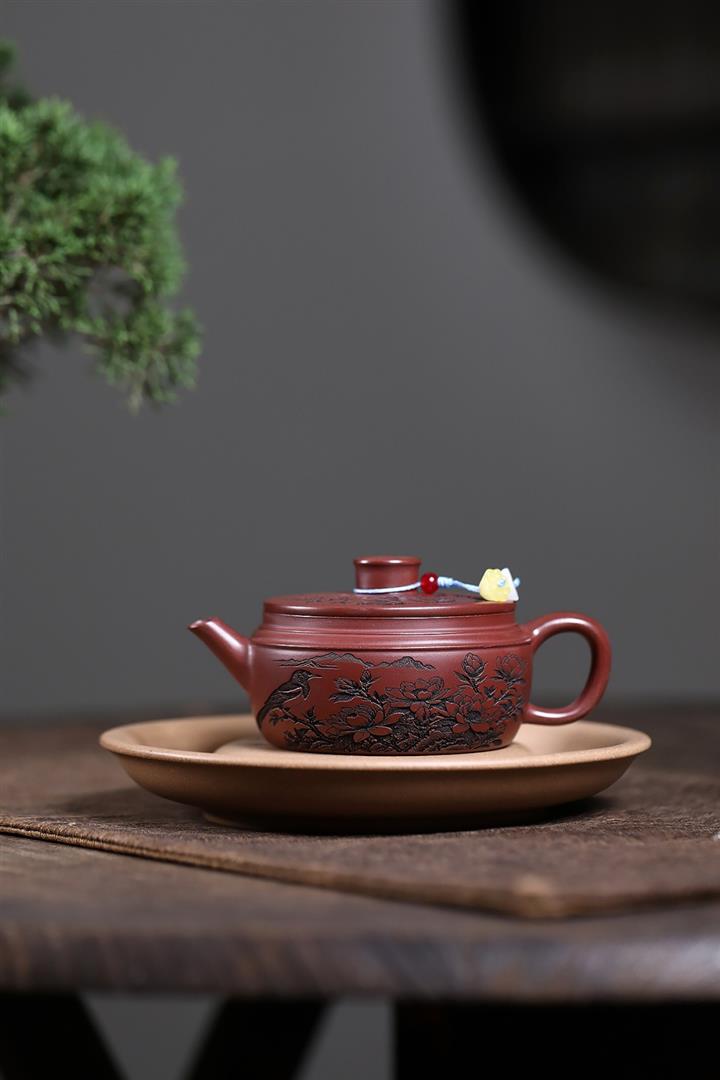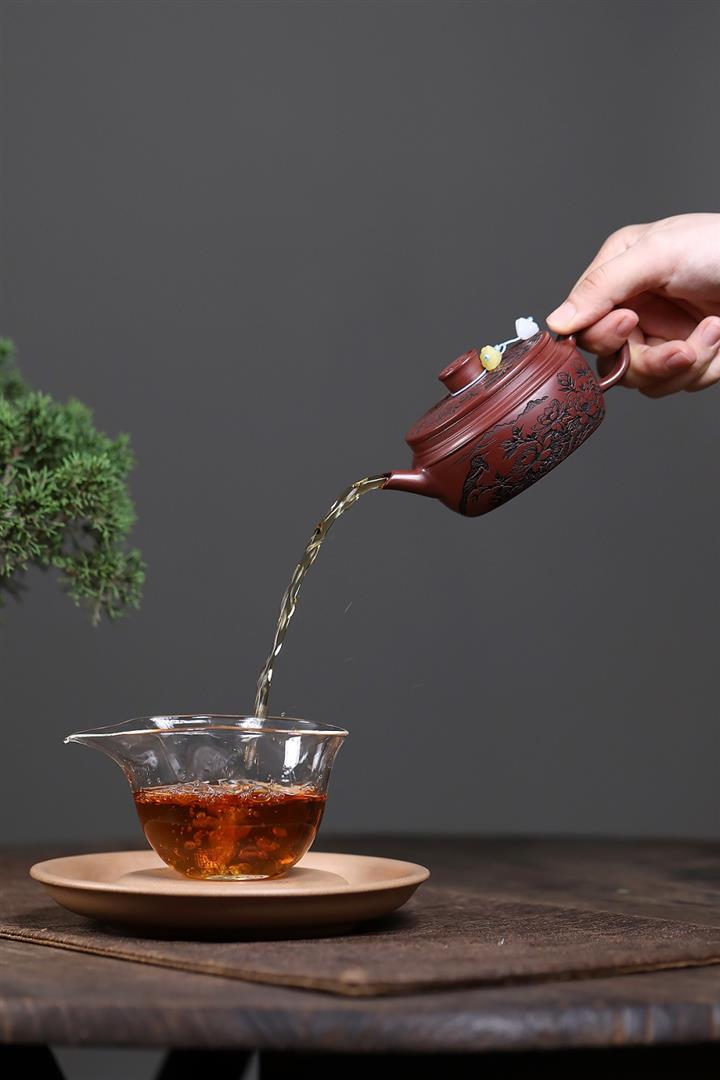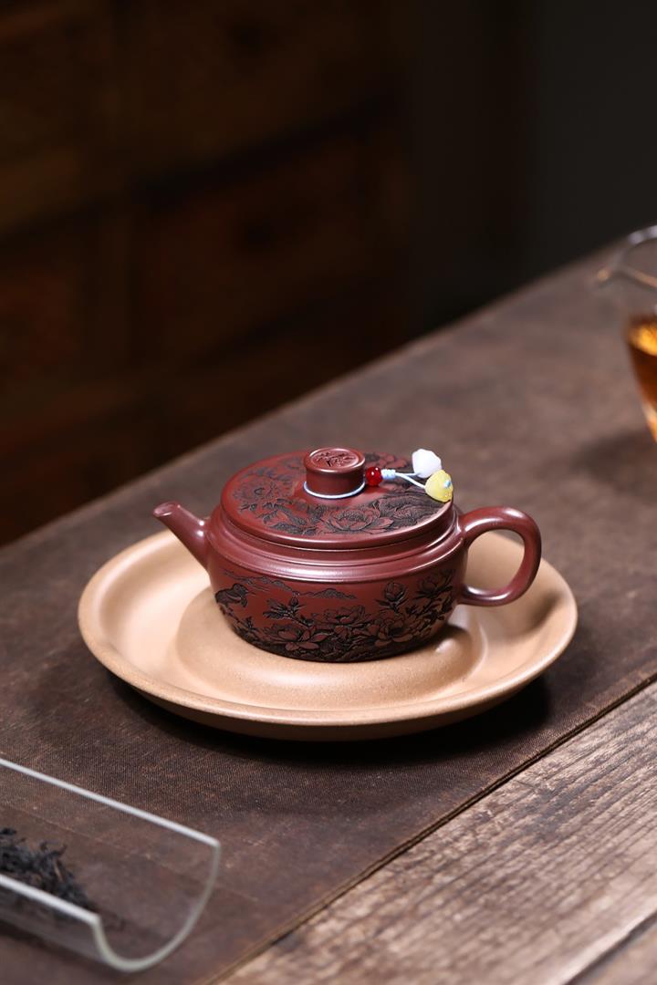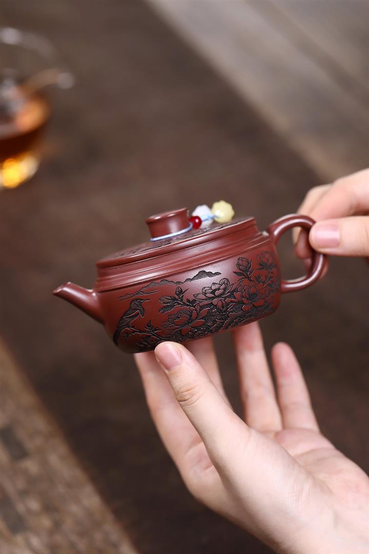 【泥料特點】砂土氣重,似淳實農民,日久使用,漸露鋒芒,養成變化,溫潤莊重。紫砂是壹種雙重氣孔結構的多孔性材質,氣孔微細,密度高。用紫砂壺沏茶,不失原味,且香不渙散,得茶之真香真味。紫砂使用越久,壺身色澤越發光亮照人,氣韻溫雅。紫砂壺長久使用器身會因撫摸擦拭,變得越發溫潤光澤。