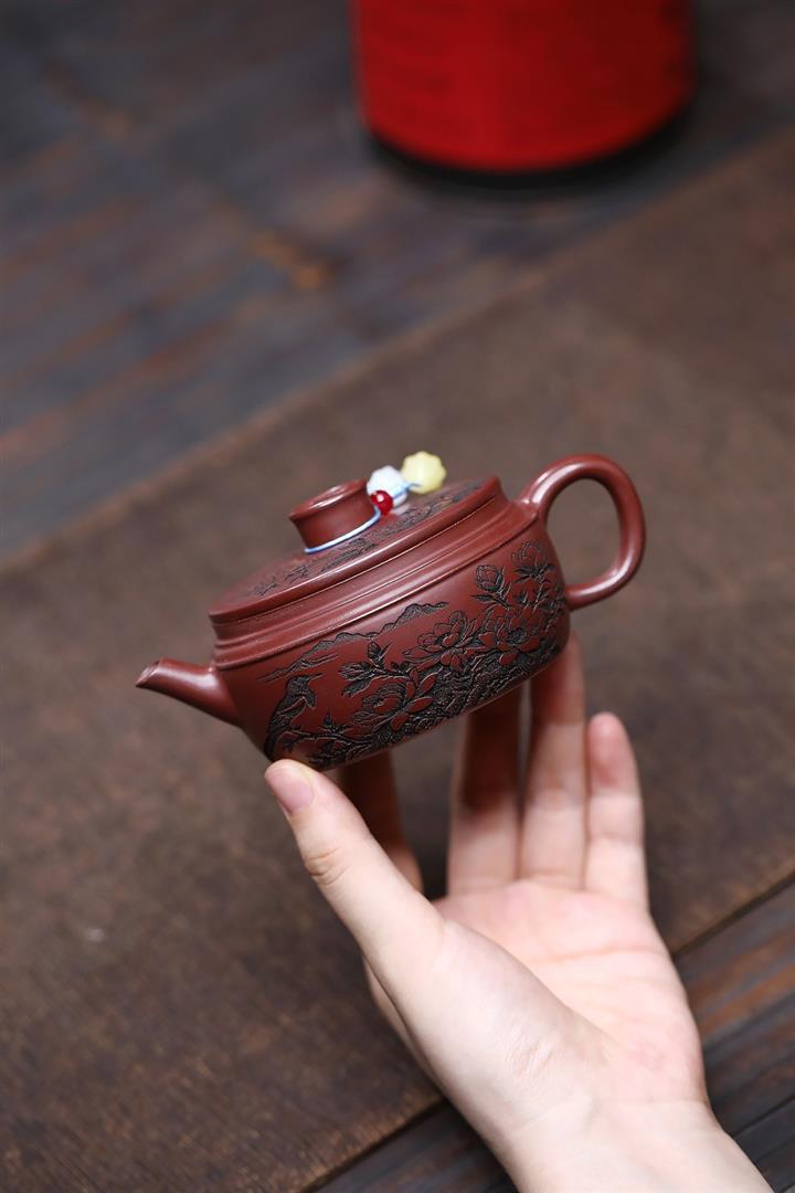 【作品介紹】此款壺形線條流暢,壺把,壺嘴,壺身壹氣呵成栩栩如生,是收藏把玩的好壺,泥料色澤古樸典雅,日久使用,漸露鋒芒,養成變化快,溫潤莊重,用其泡茶,使用的年代久,壺身就溫潤,泡出來的茶湯也就醇郁芳馨。